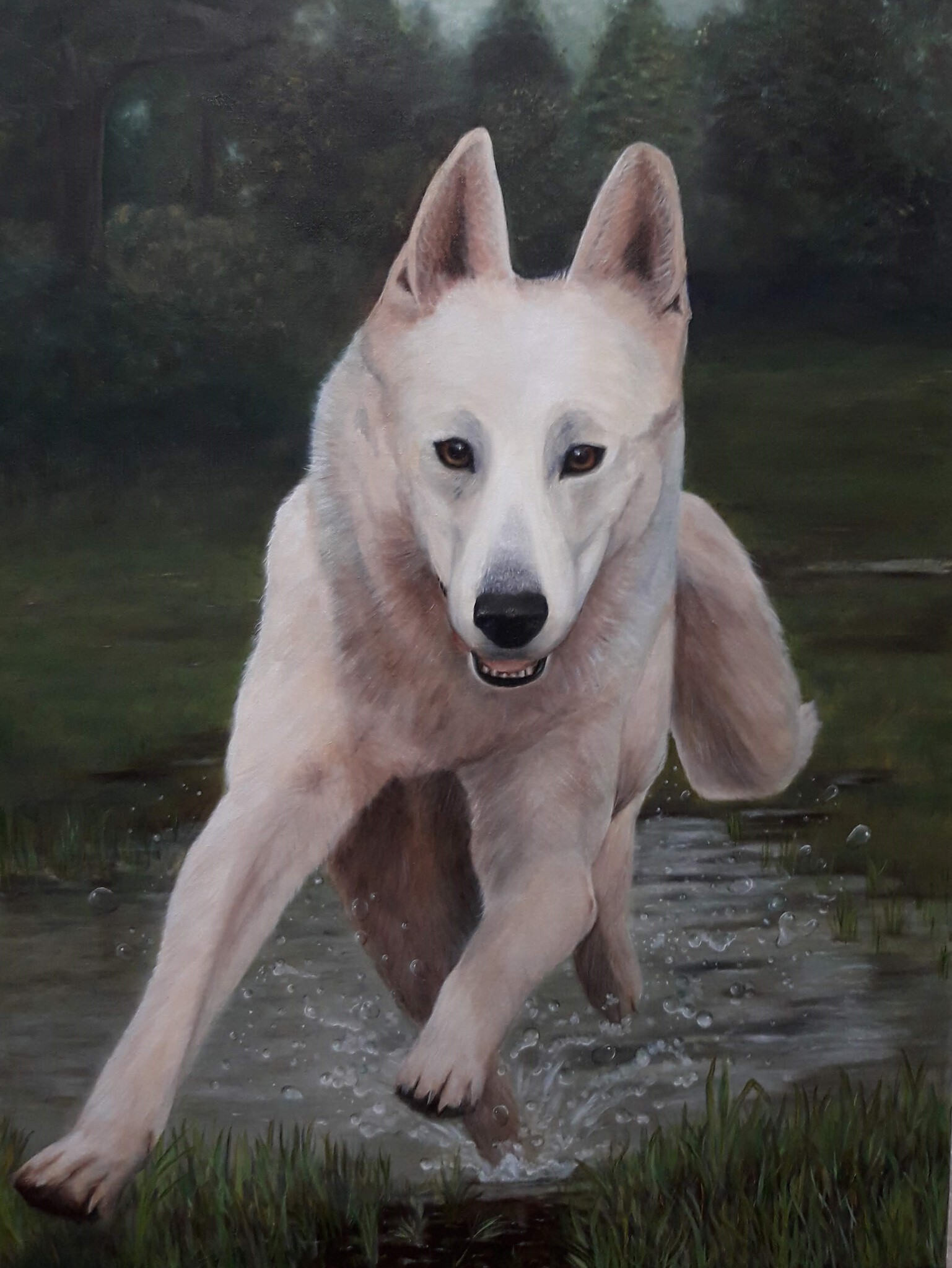 Sinds een aantal jaar heb ik het schilderen met olieverf ontdekt. Startend met het portretteren van mijn eigen honden bemerkte ik hoe heerlijk het is om dierportretten te schilderen.