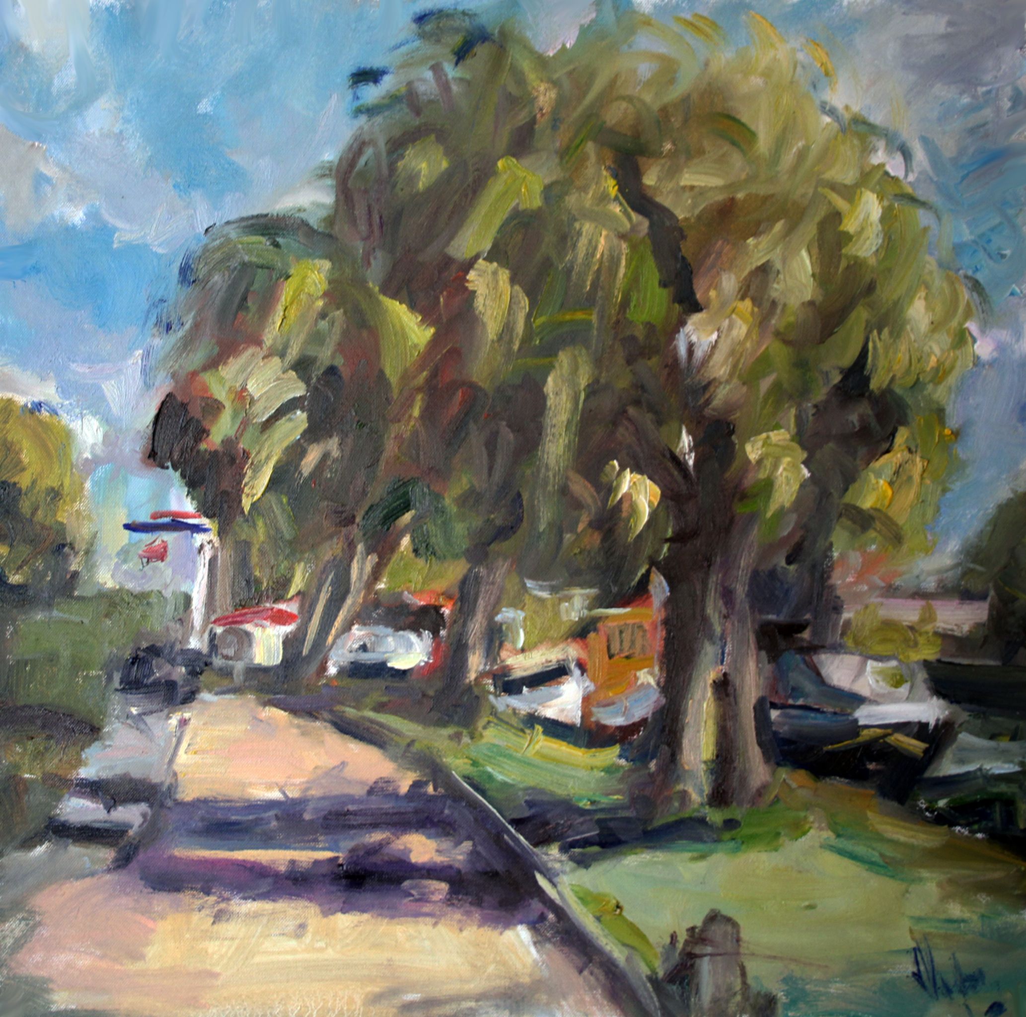 bomen bij haven Makkum gezien vanuit de Tiggelaar fabriek