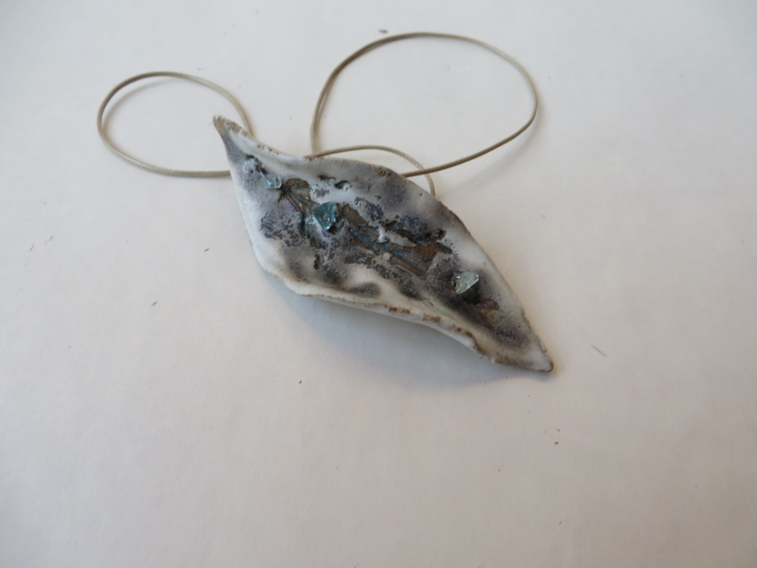 Sieraad bestaan uit een keramisch blad en minerale steentjes.