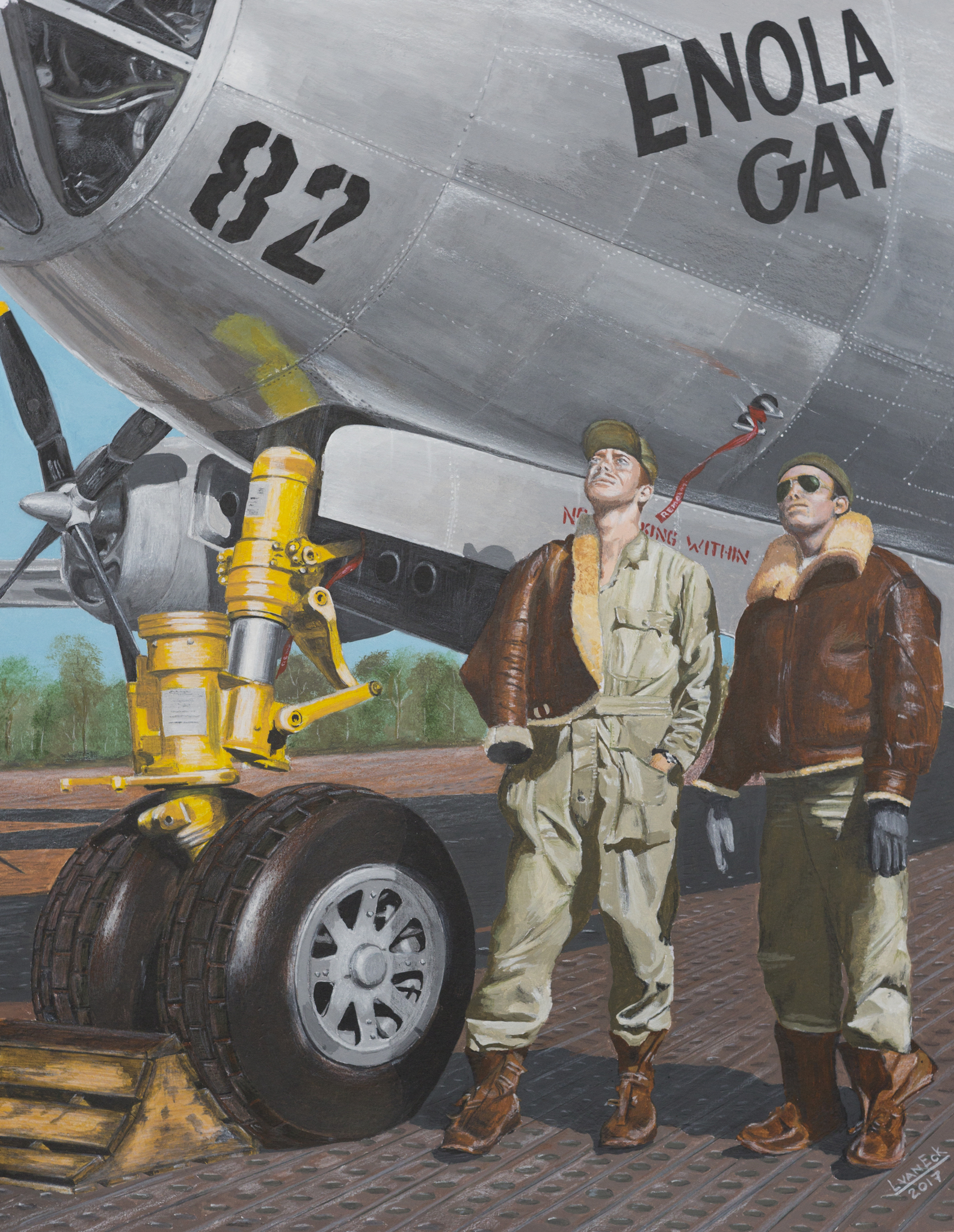 Onderhoudspersoneel voor de Boeing B29 Enola Gay; de bommenwerper die de atoombom op Hiroshima heeft laten vallen.