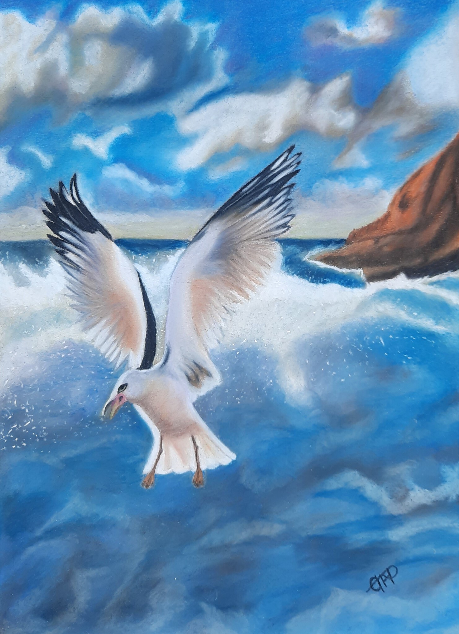 meeuw en zee, ingelijst met bijpassende passepartout Expositie Marioord te Rosmalen van 1 april t/m 31 mei 2021