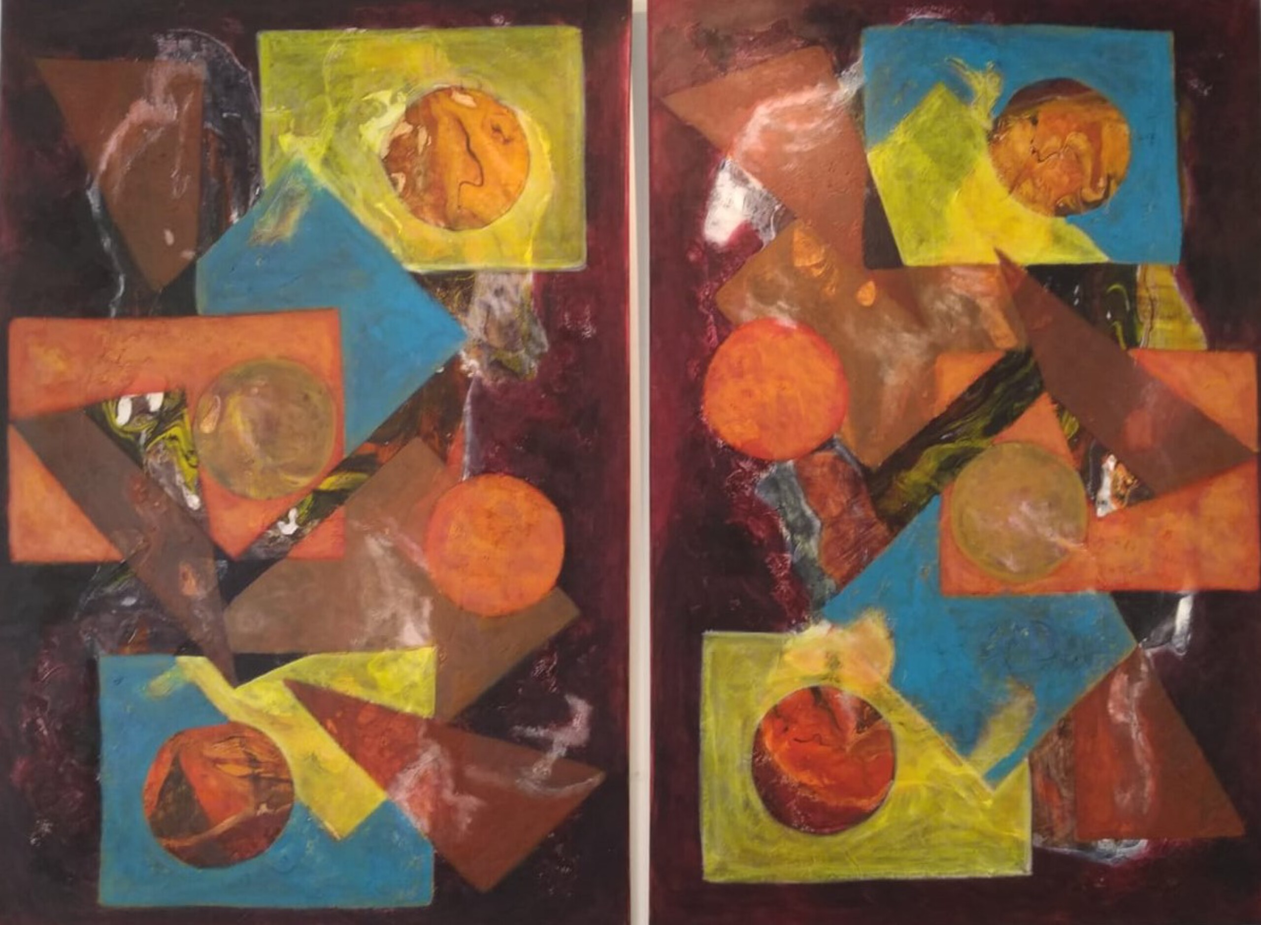 twee luik blokken mixid media, ook los te koop Expositie 2019 De Meent te Nuland