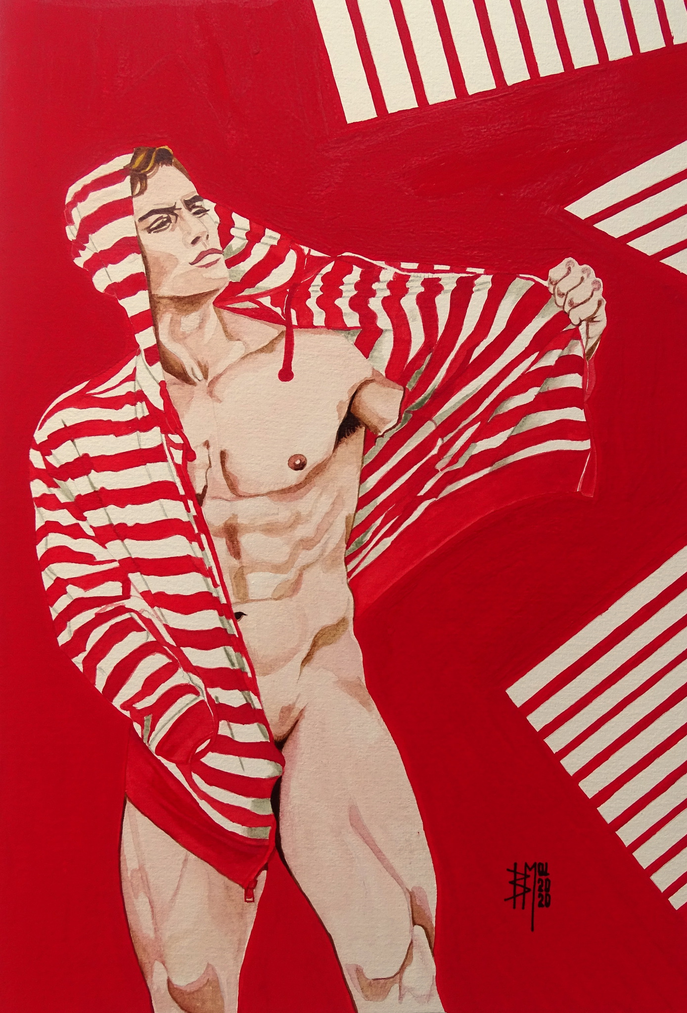 Art Gouache Red Rotterdam Delfshaven Exhibition Kerst Stripes Illustration Queer Watercolours Muscles Dutchartist Gayart Curators Hoodie Malemodel Bastiaanmol Queerart Lgbt Maleart