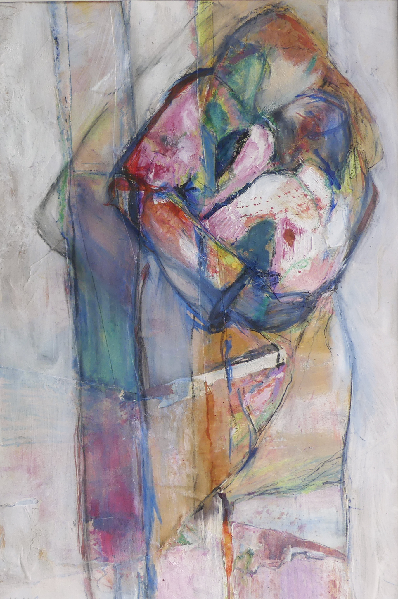De omarming, die in coronatijd niet mag, is in het schilderij als verlangen weergegeven..