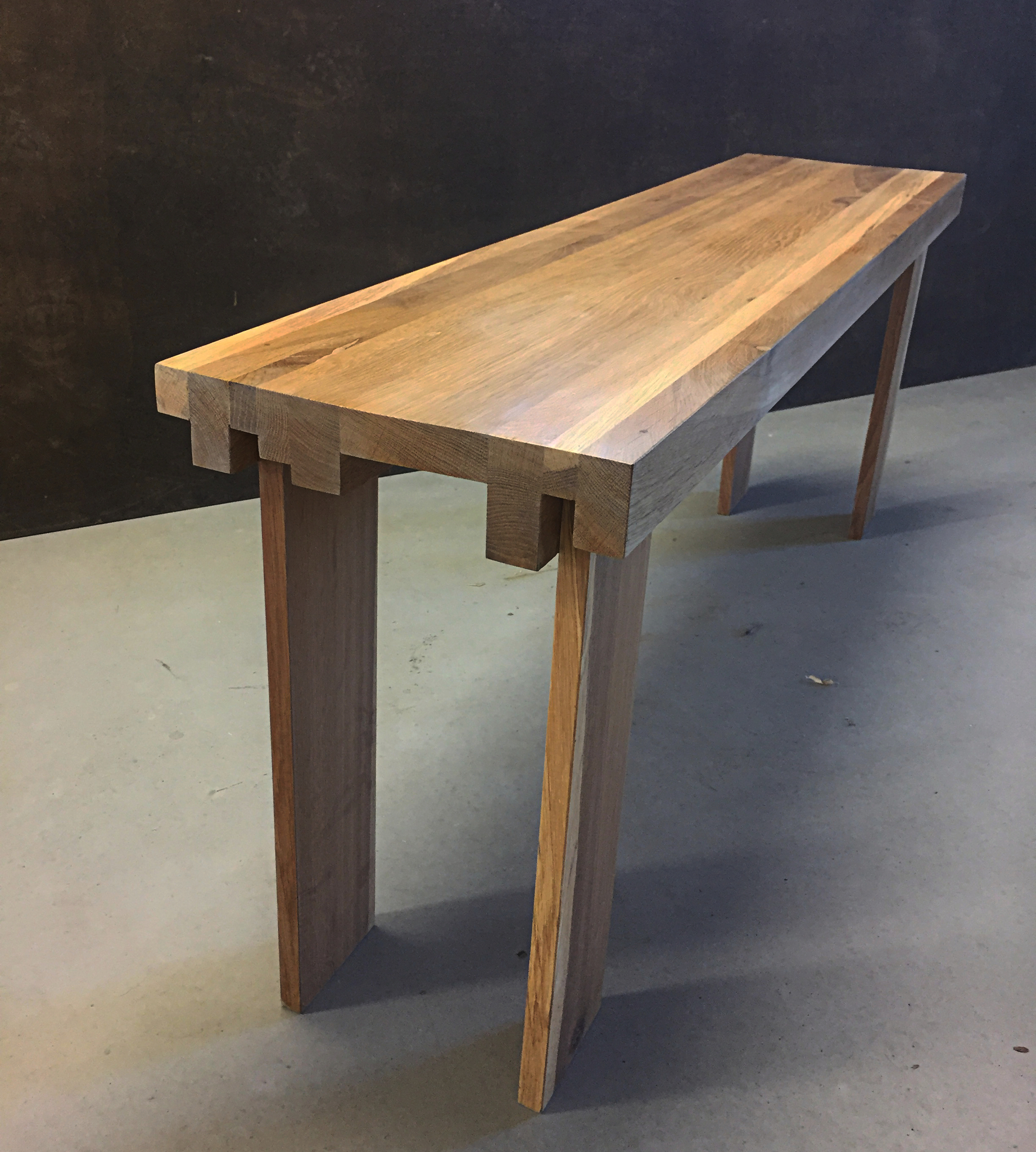 Een lichtgekeurde eiken bijzettafel waarbij de rankheid ervan direct in het oog springt. Een verrassing zijn de kopse kanten met een afwerking die aan kantelen doet denken. Afmetingen L125 x B31x H50 Afgewerkt met white wash en hard-wax olie Nb. Bij verkoop kan de tafel alleen afgehaald worden of eventueel gebracht. De kosten zijn voor de koper
