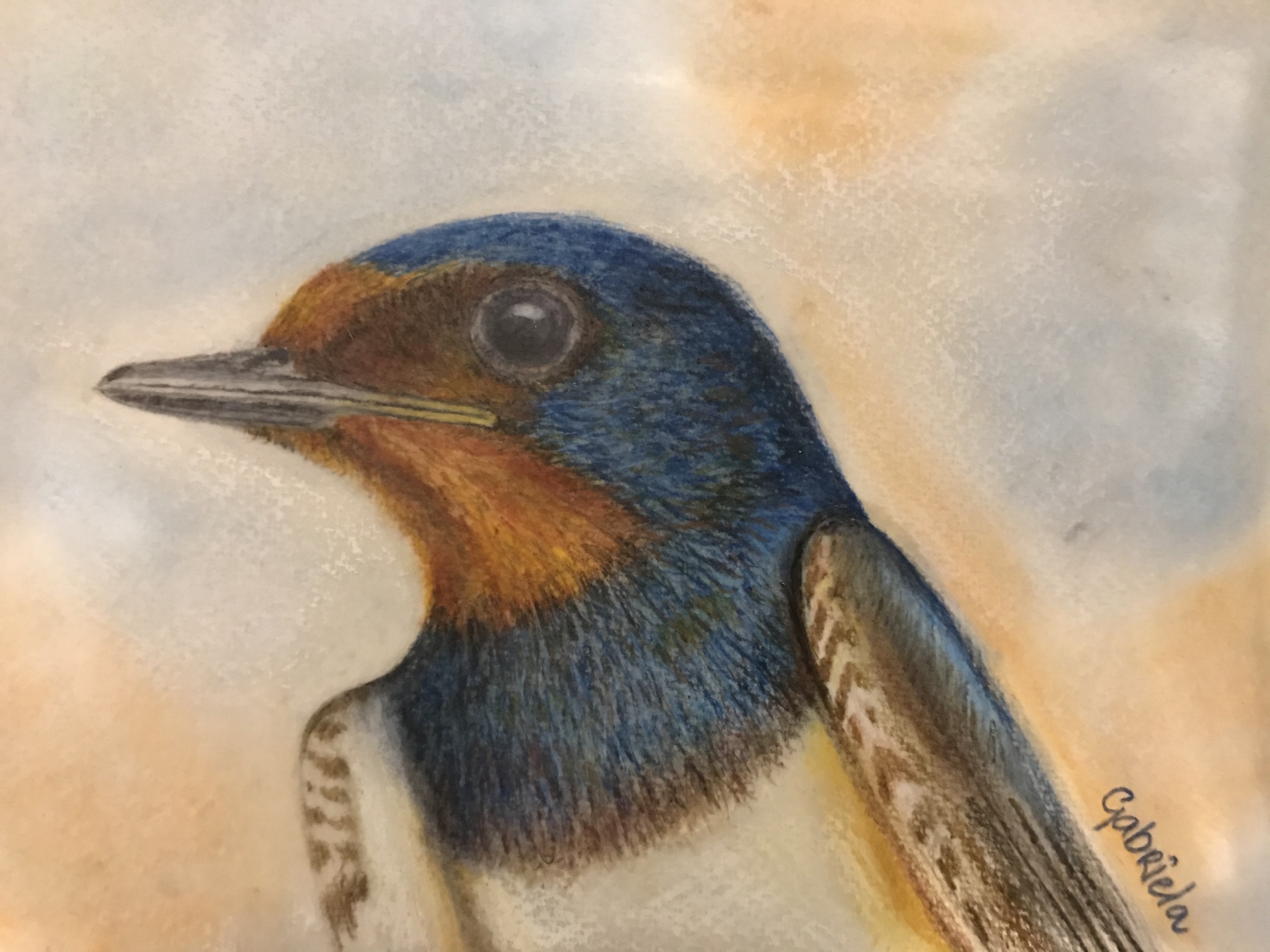 Potlood tekening van een boeren zwaluw op aquarelpapier.