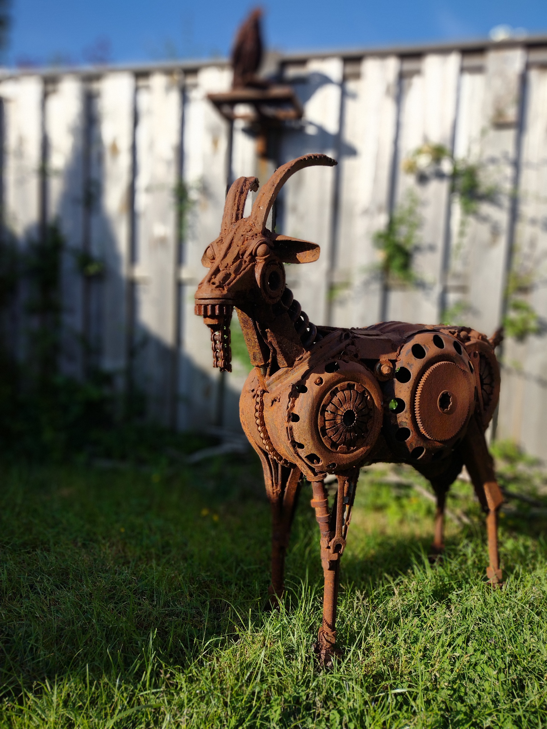 Tuinbeeld Roest Geit Goat Beelden Tuinbeelden Autokunst Recyclekunst Ijzerkunst Oudijzerkunst Duurzamekunst Schrootkunst Ijzerbeeld Roestkunst Staalkunst Laskunst Geitenbeeld Schrootbeelden Schrootbeeld