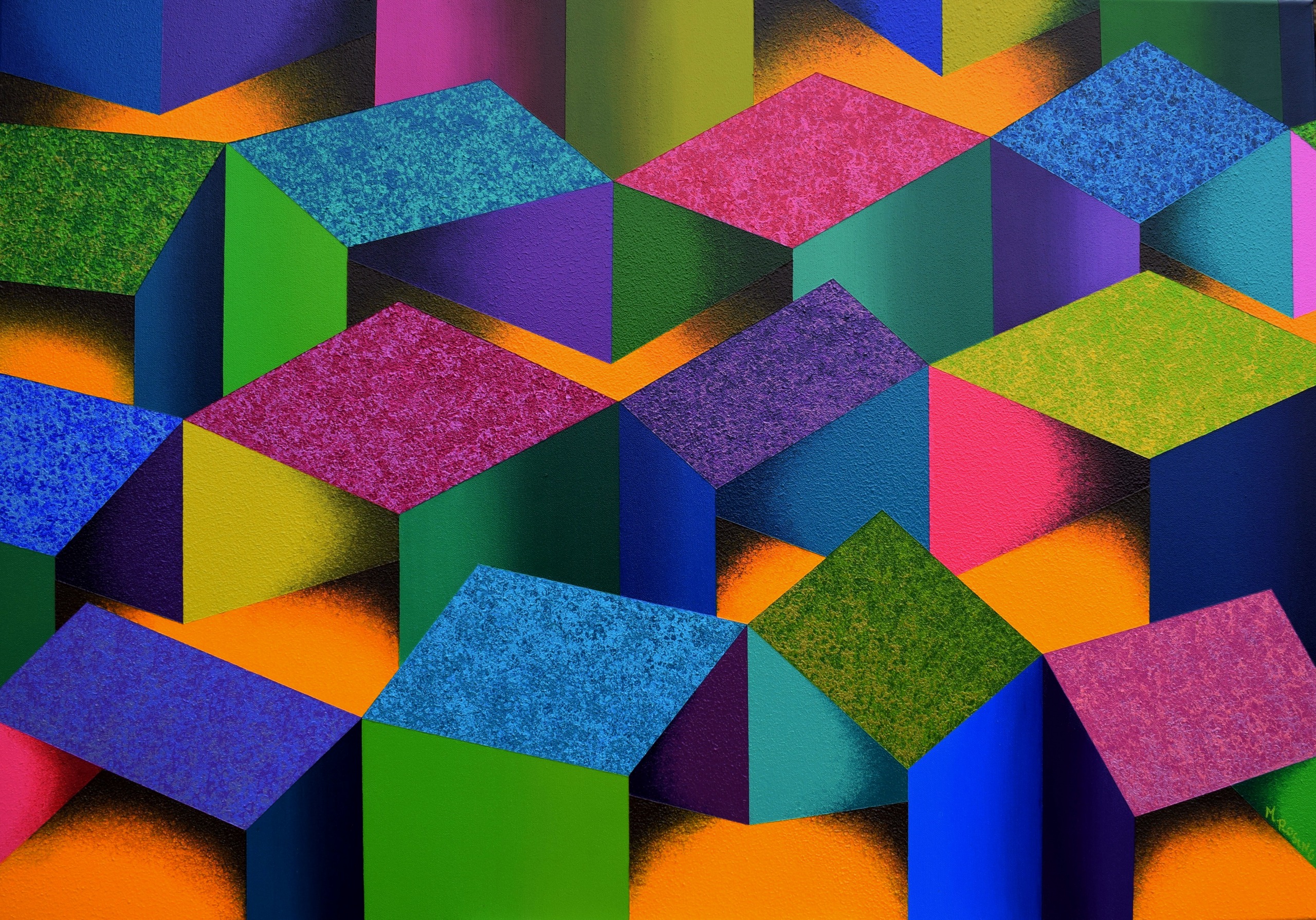 Modern Rood Geel Rose Yellow Paars Groen Art Kleurrijk Kunst Moderne Green Purple Stadsgezicht Blokken Kubisme Marieke Kubus Colorful Cubism Rosing Loppersum Mariekerosing