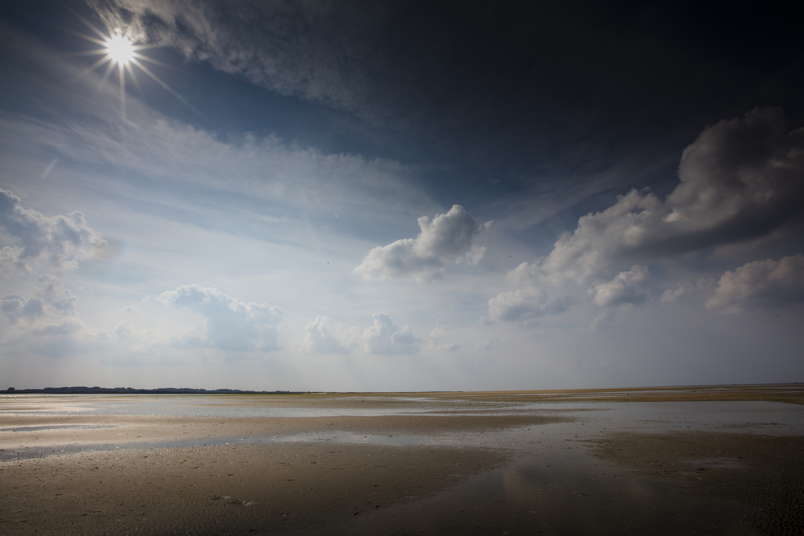 Blauw Wolken Blue Lucht Sky Clouds Compositie Lijnen Ronde Cumulus Flats Tegenlicht Vegetatie Reflecties Salt Reflections Round Lines Schorren Composition Mud Backlight Marshes Slikken Vegetation