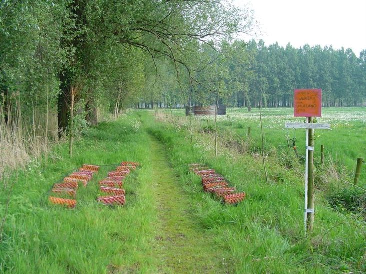 Iedere vrouw wil wel eens iets anders, ook moeder Aarde. Zou ze niet eens een ander kapsel willen, zoals krullend gras? Op een aantal plaatsen heb ik een proefkwekerij gemaakt voor krullend gras; m.b. van krulspelden voor de aarde en het publiek dat mee mocht helpen de haren van de aarde te verzorgen, probeerden we het gras te laten krullen.