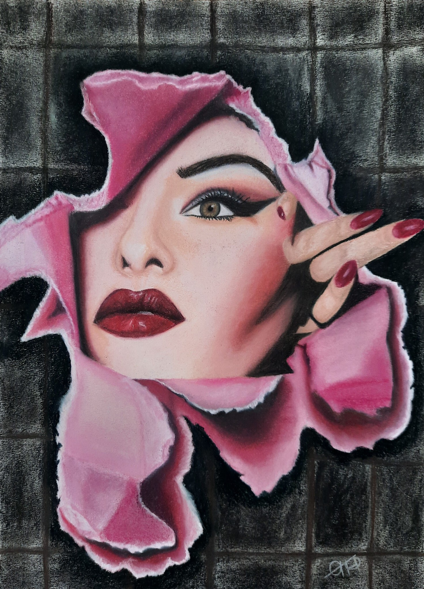 Portret, vrolijke verrassing, ingelijst met passepartout Expositie Bouwman Advocaten te Uden, van 28 januari t/m 30 april 2021 Expositie Bouwman Advocaten te Schijndel. vam 1 mei t/m 31 juli 2021