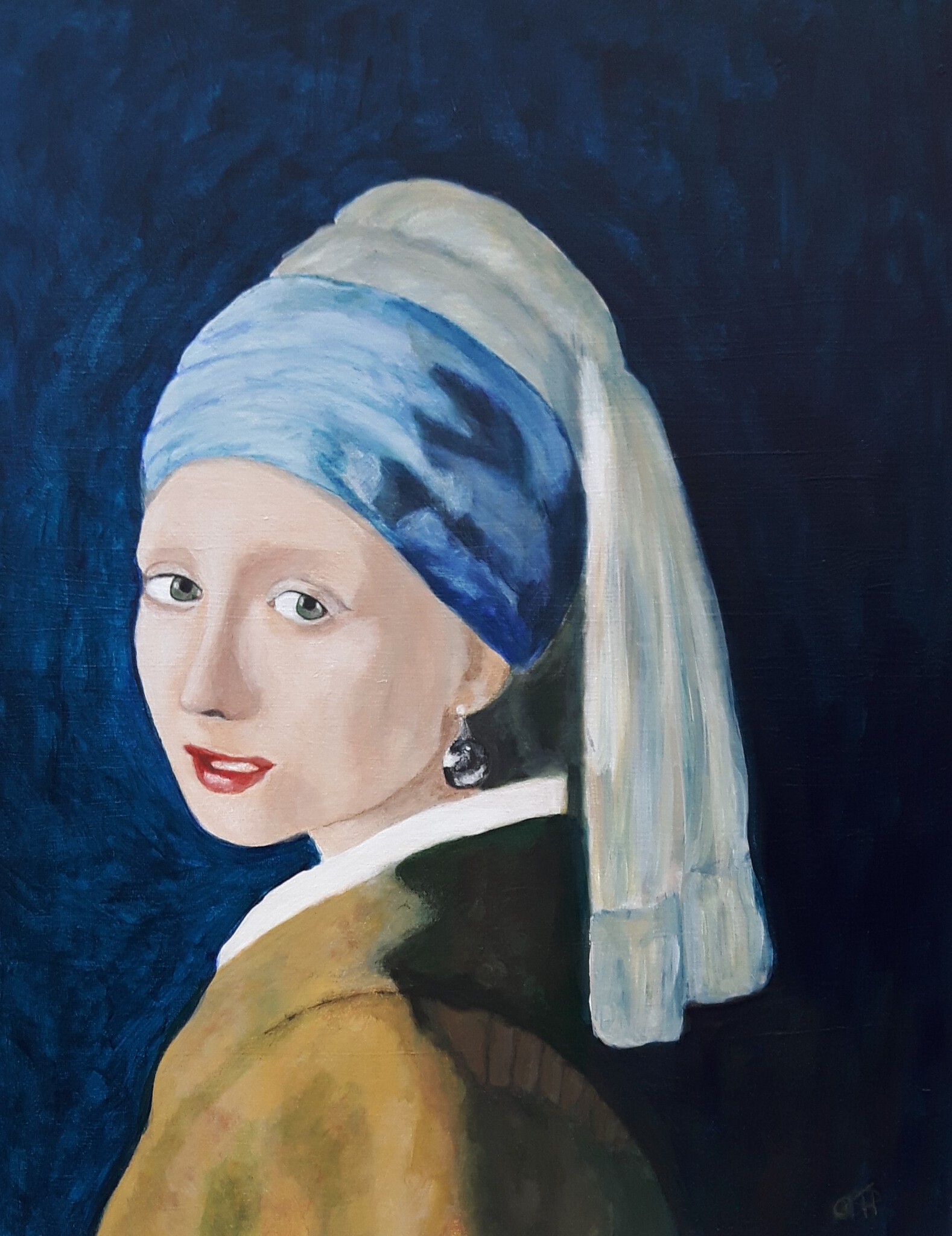 Meisje met de parel, Johannes Vermeer, Oude Meesters in een nieuw jasje project van Kunstkring De Meent te Nuland waar ik aan meegedaan heb. Expositie Bouwman Advocaten te Uden, van 28 januari t/m 30 april 2021 Expositie Bouwman Advocaten te Schijndel. vam 1 mei t/m 31 juli 2021