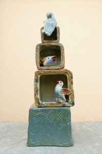 Keramiek en sieraden: Keramische figuratieve en abstracte objecten zoals beelden van mens en dier, wand- en lichtobjecten (kandelaars) en sieraden zoals hangers, colliers (kralenkettingen), ringen, oorbellen/clips, armbanden en broches.