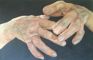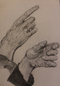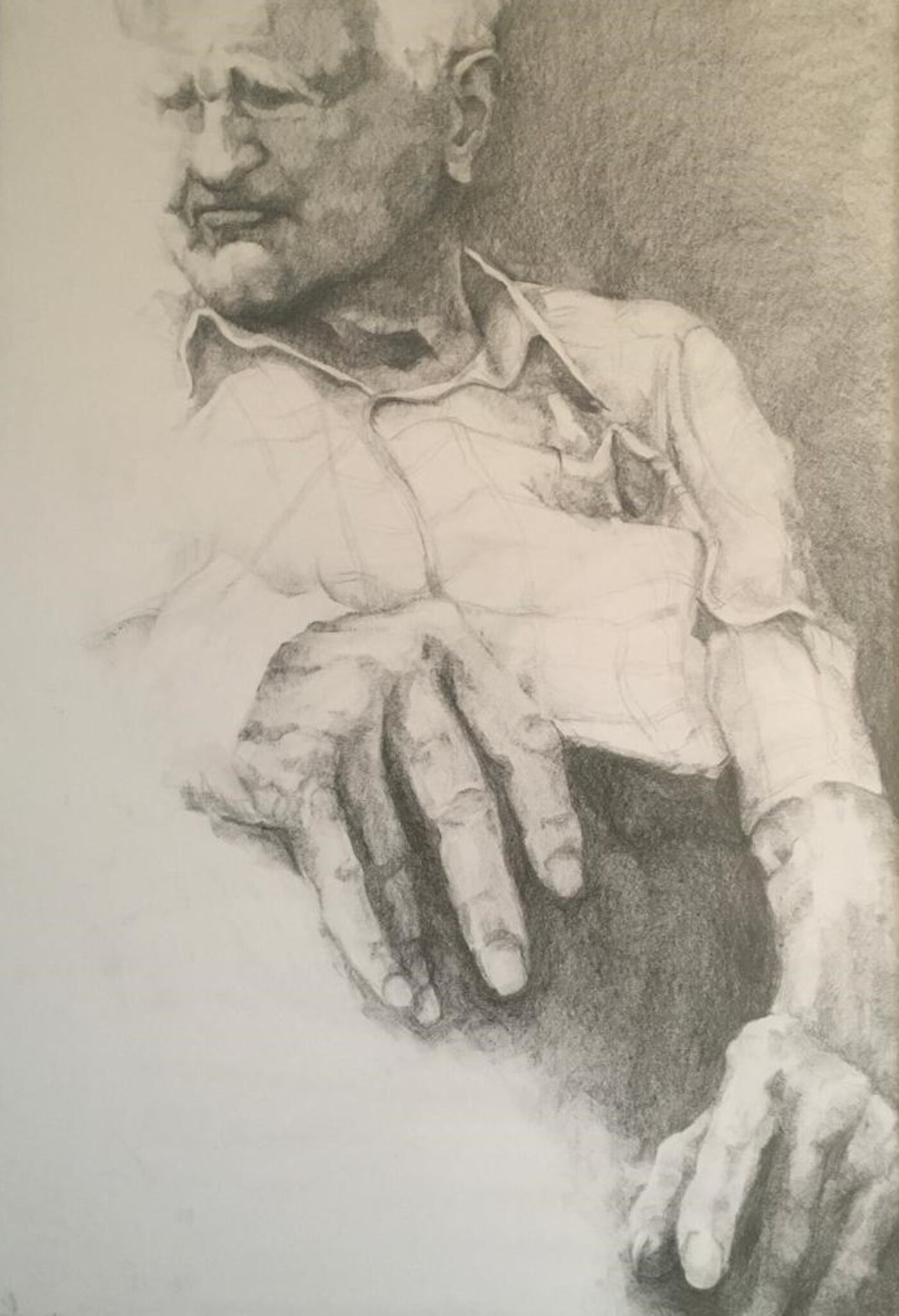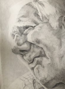Tekening van een man die euthanasie heeft gehad. Grafiet op papier. Extra grote afmeting.