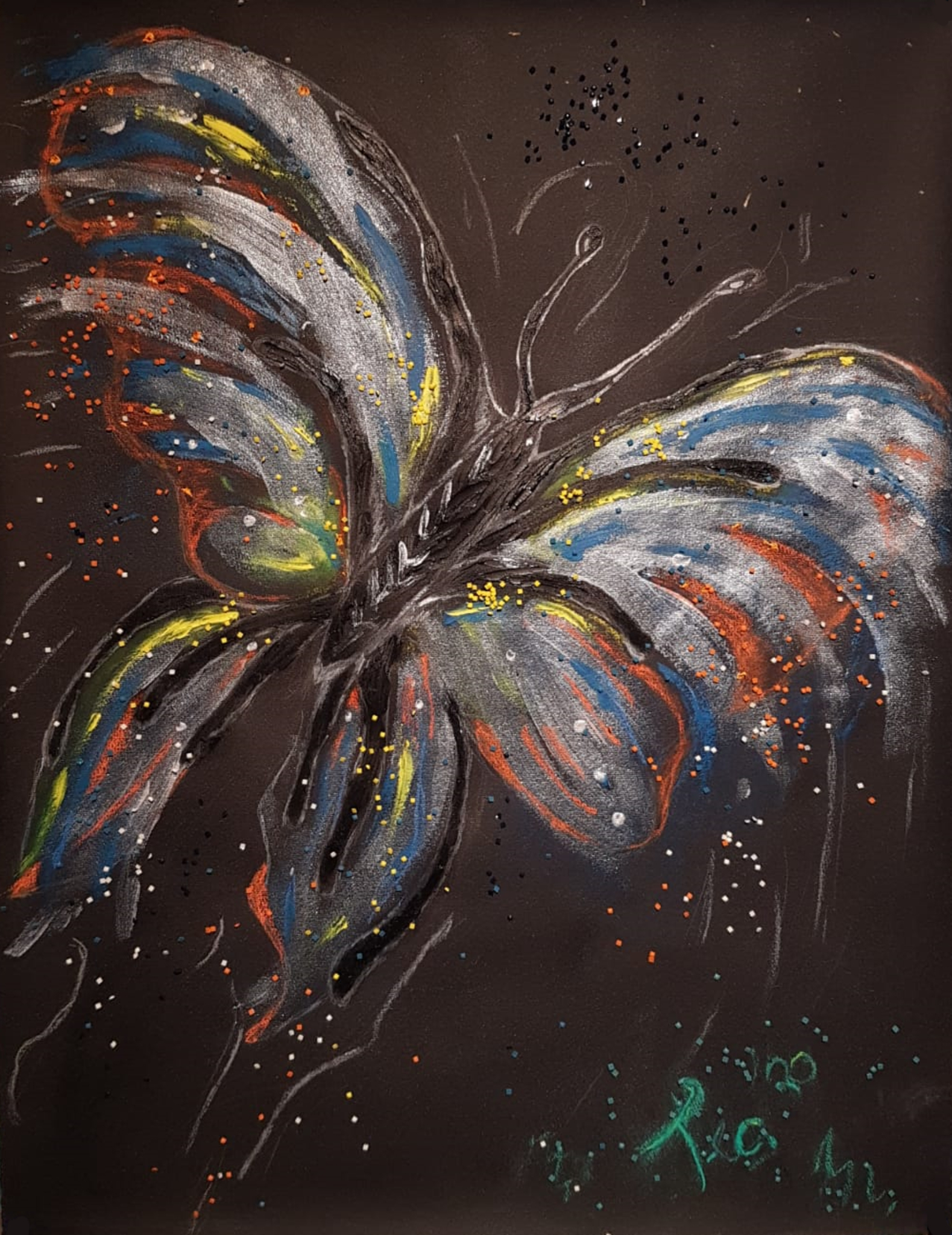 Vlinder die s'nachts opzoek gaat naar nieuw avonturen. Hoog in de hemel vliegt zij over het gras.