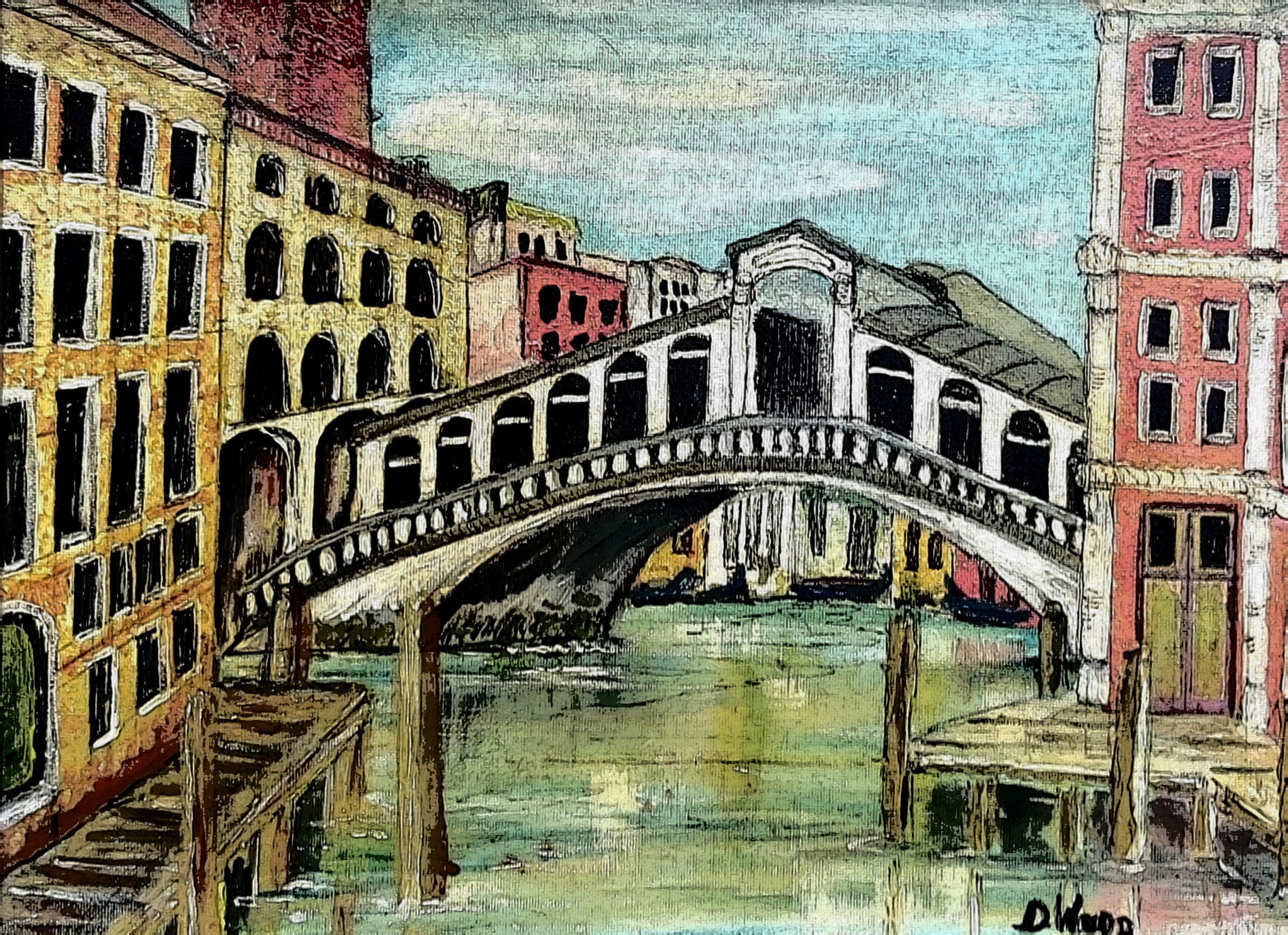 Venetië de stad waar je heel veel inspiratie op kan doen elk straatje is schitterend mooie kleuren en grachten. Dit schilderij is omlijst met een Italiaanse lijst