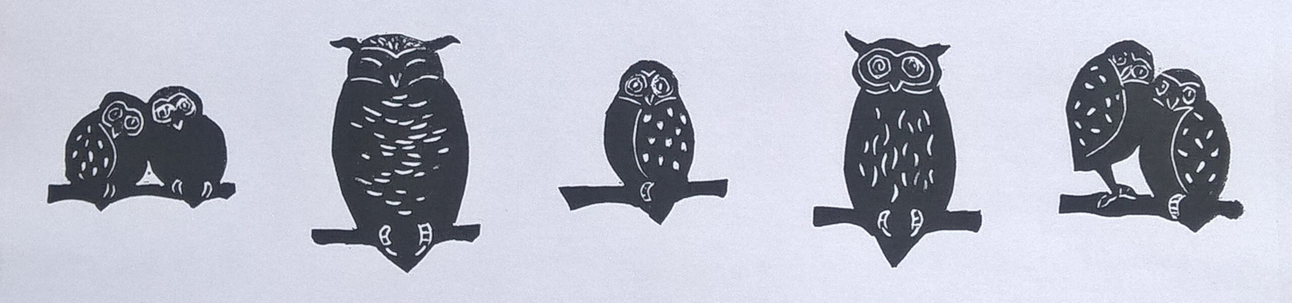 Vogel Uil Vogels Uilen Gesneden Steenuil Oehoe Kunstenaarsboek Linoleumsnede Afgedrukt