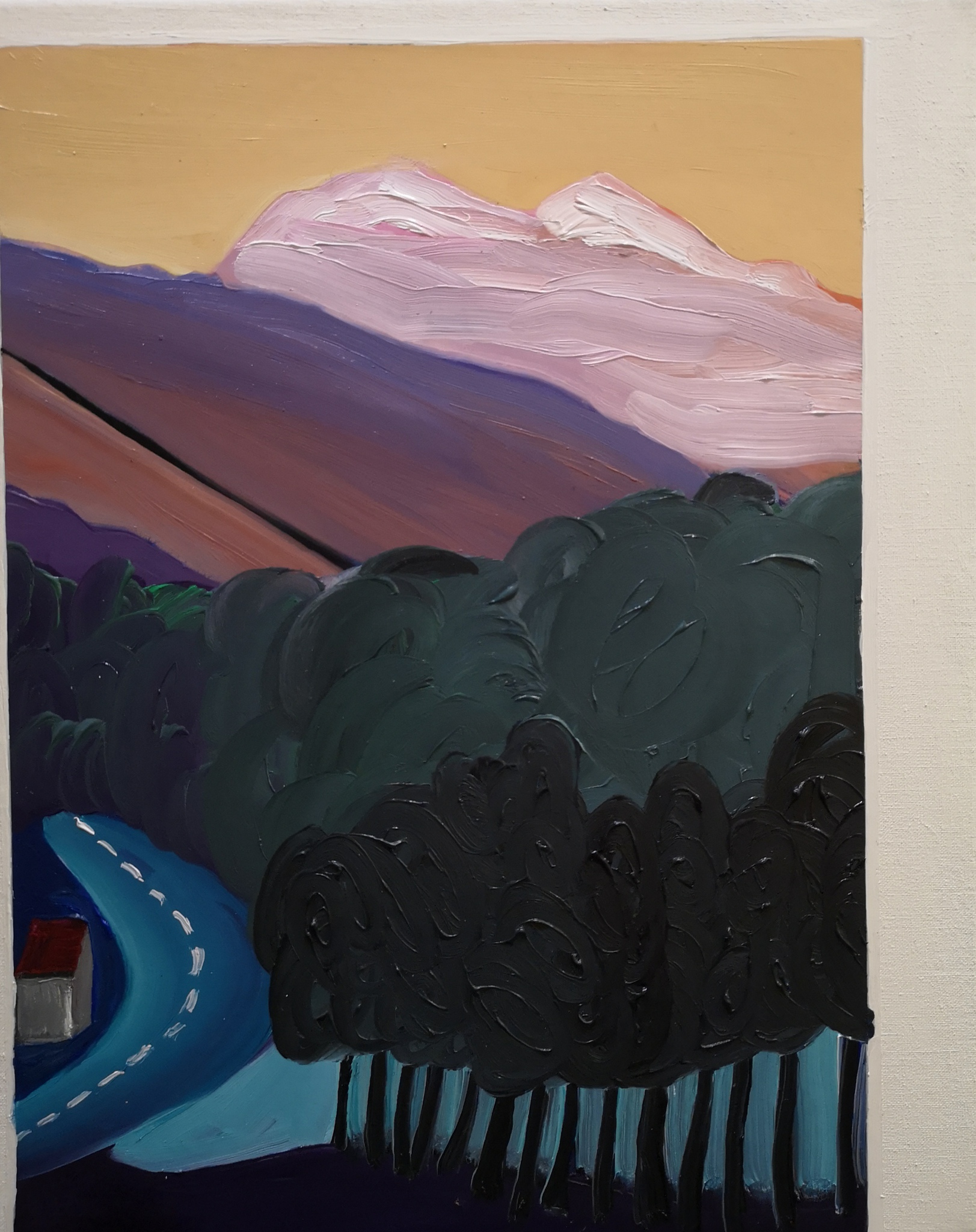 Landschap Bergen Autoweg Bomen Schilderij Olieverf