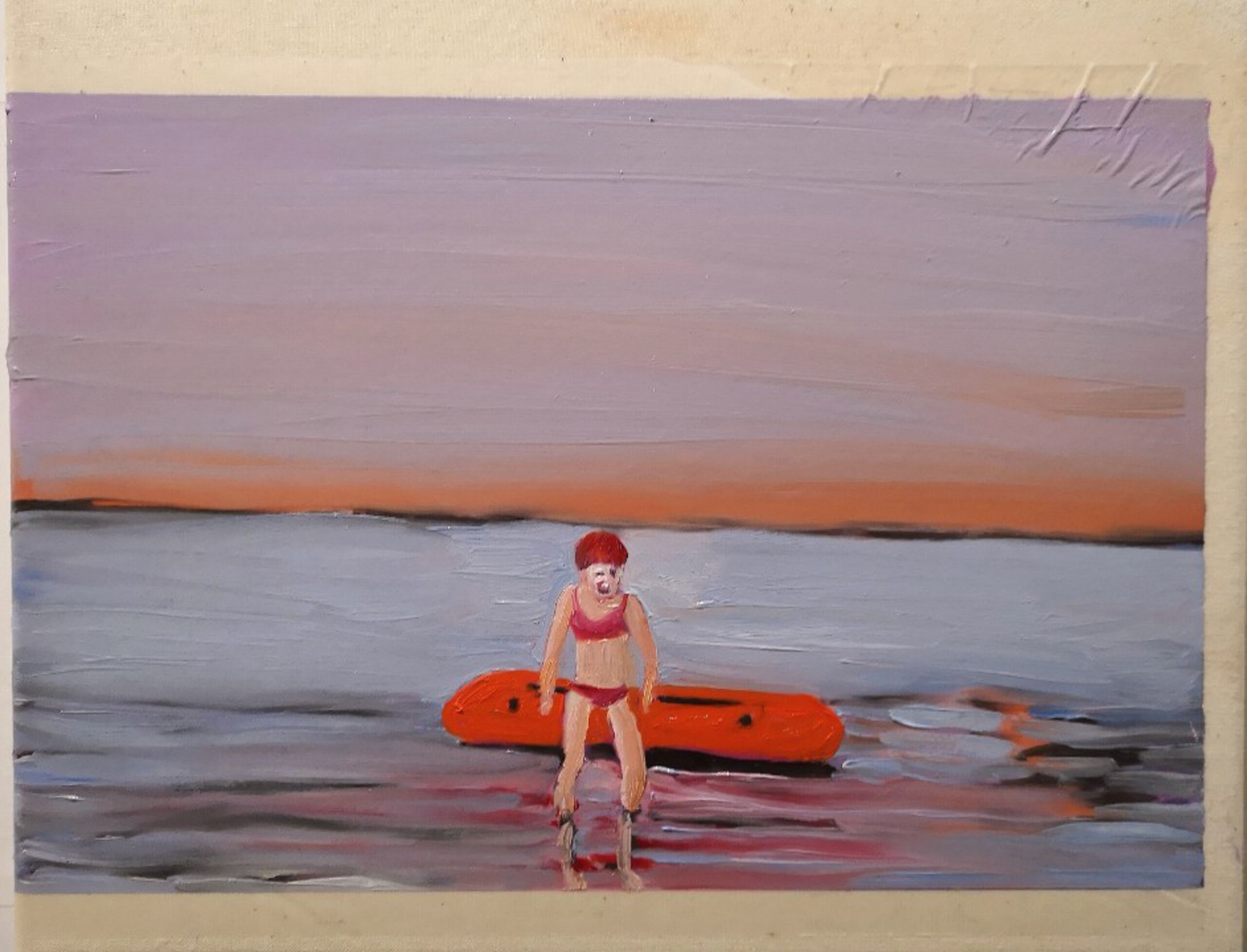 Schilderij Meisje Landschap Water Olieverf Horizon Boot