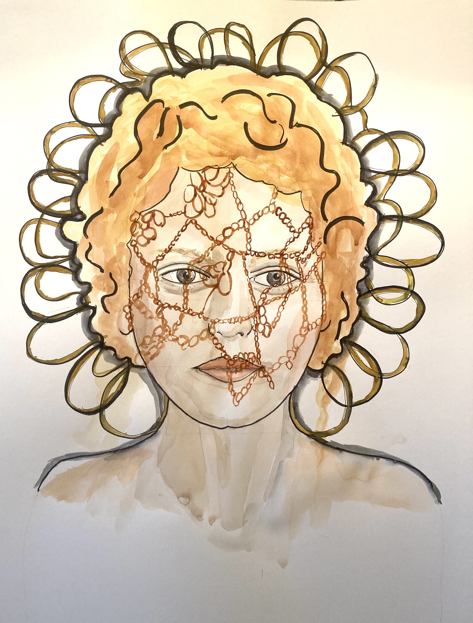 Vrouw Portret Mixed Media Papier Woman Kunst Portrait Moderne Paper Modernart