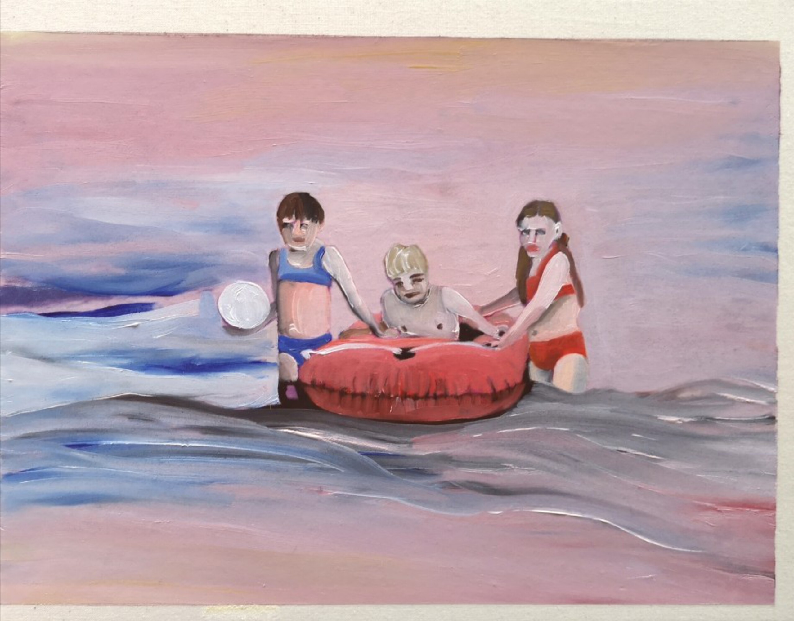 Schilderij Water Olieverf Meisjes Horizon Boot Vrienden