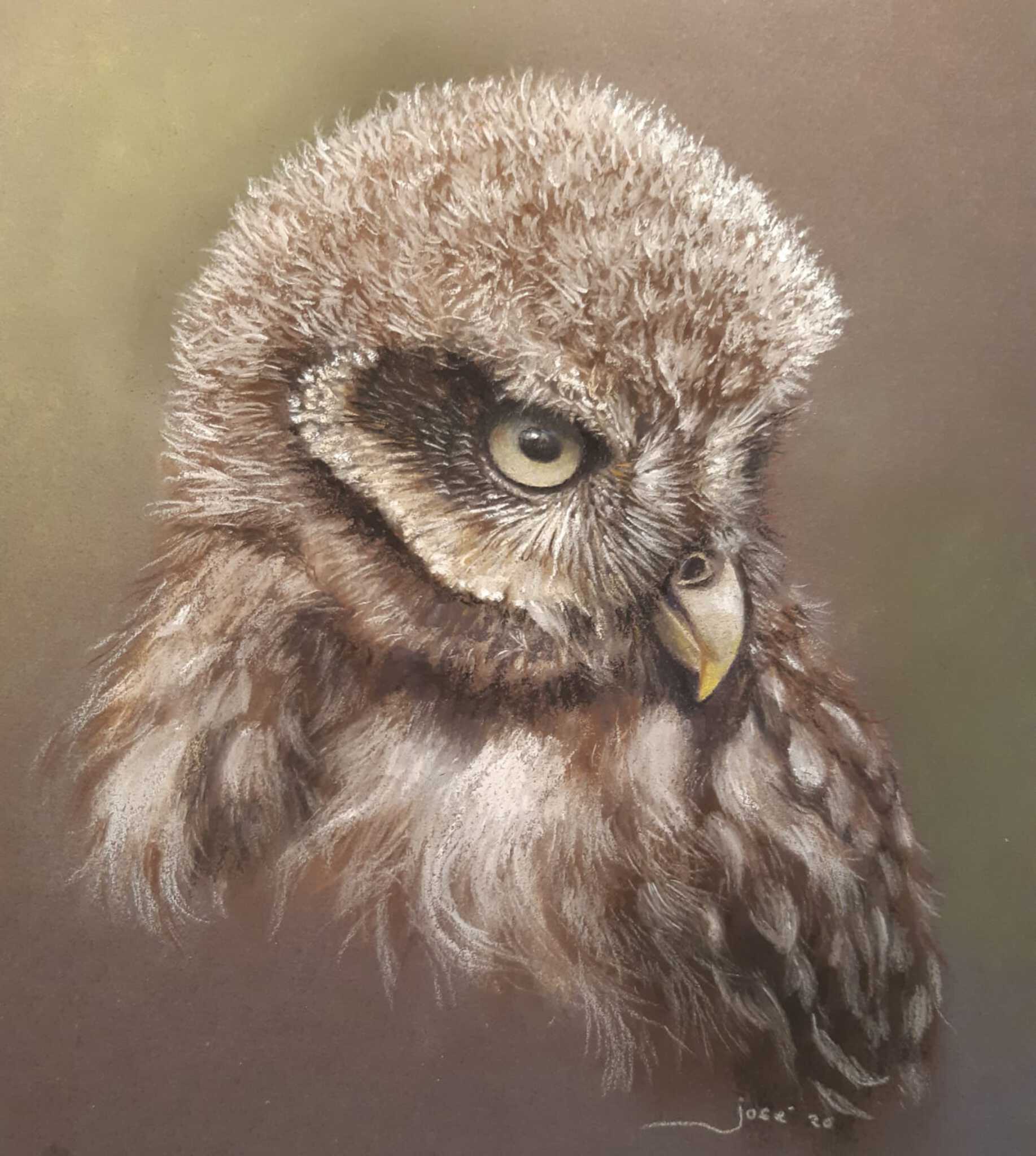 Uilskuijken in pastel. Is vanaf 14 december 16.05 te zien in programma beestenboel van RTV OOST en daarna op uitzending gemist.