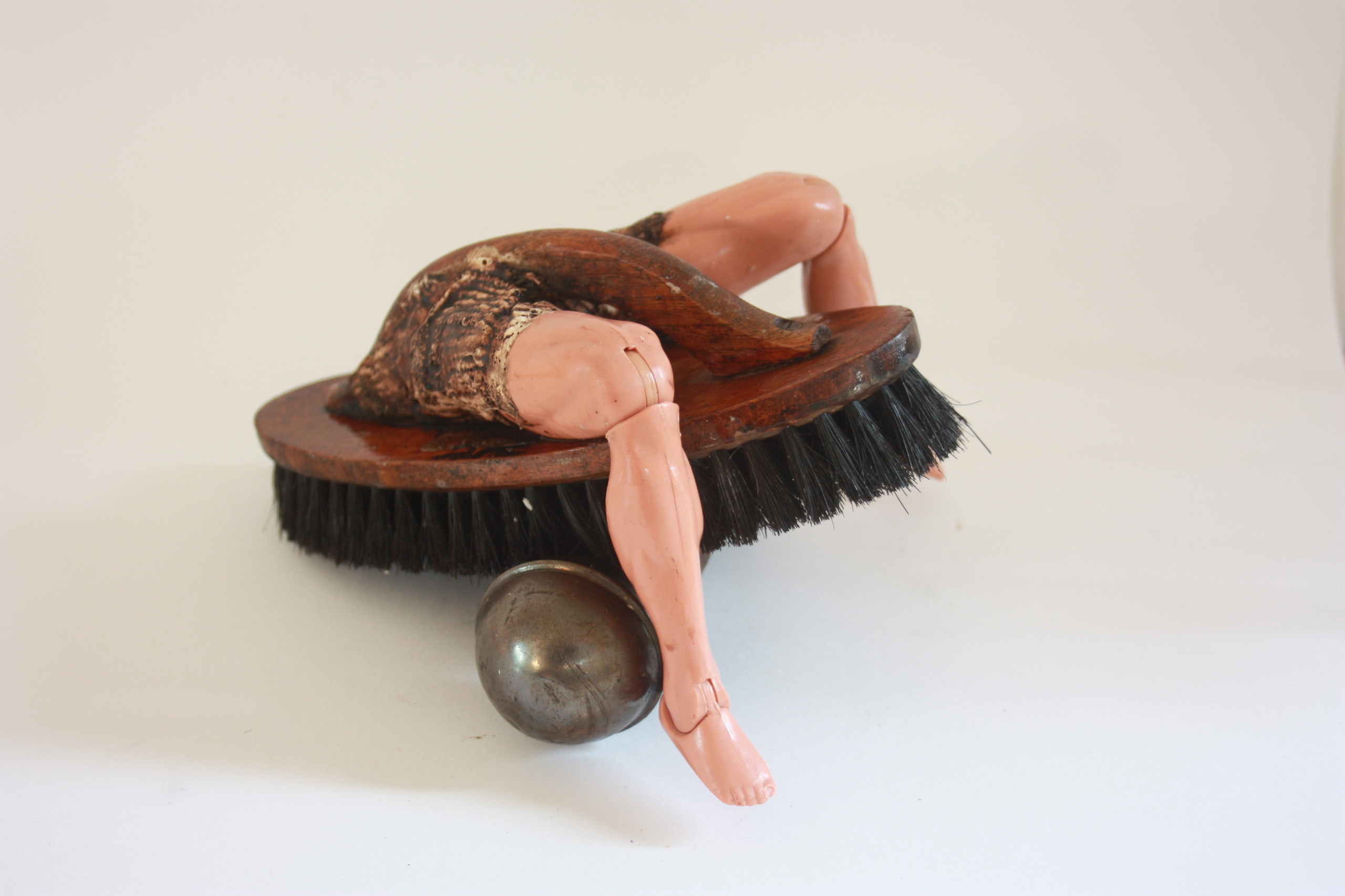Mixed Media Kunst Benen Assemblage Wagen Barbie Borstel Duurzaam Circulair