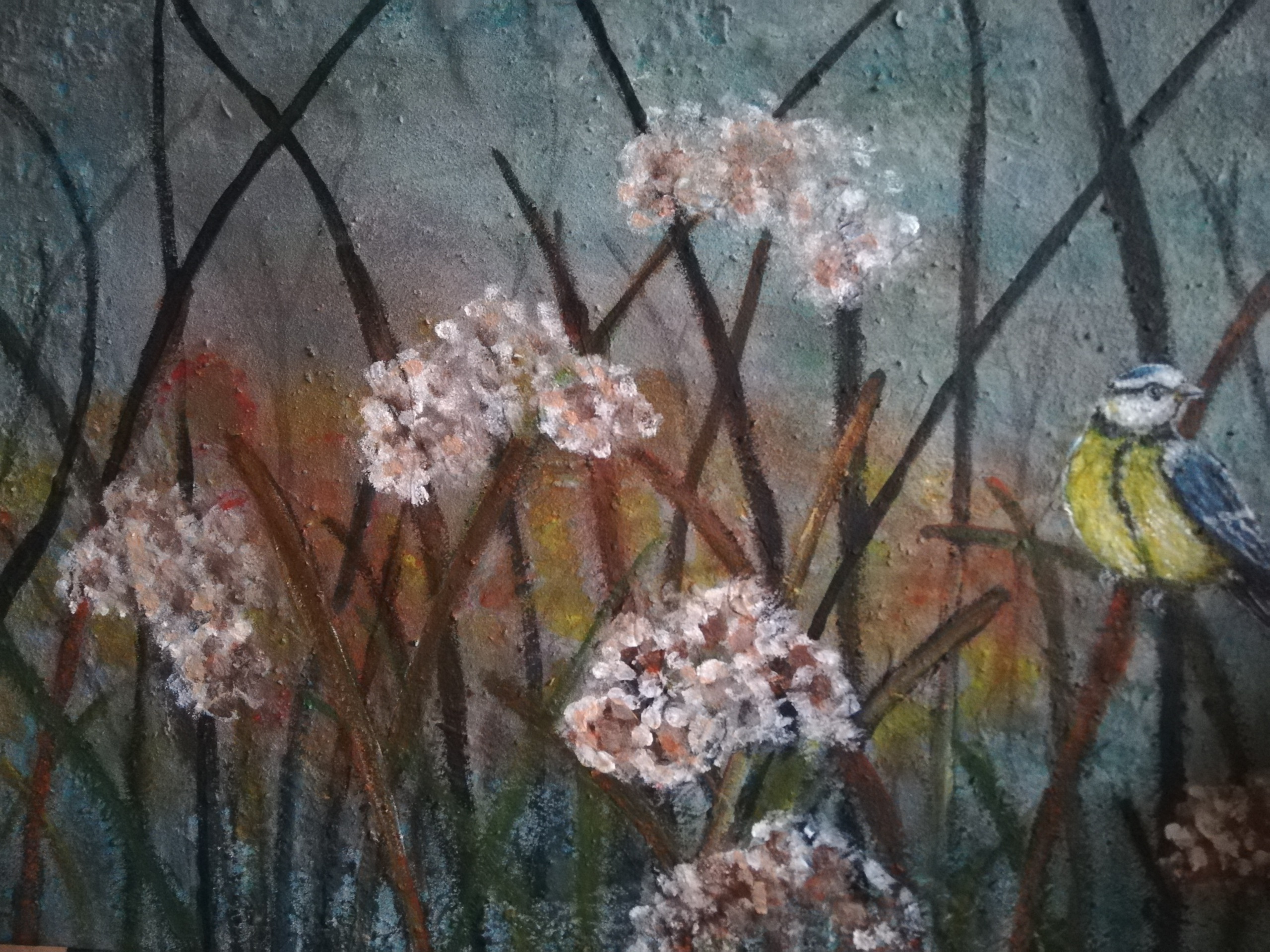 koolmees, acryl op canvas