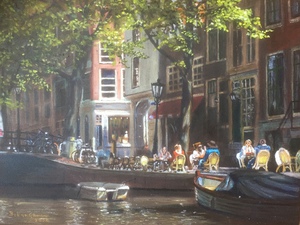 na pensionering en met enige aanleg voor tekenen, 7 jaar geleden schilderles genomen. Schilder vooral realistisch mn.water, luchten en landschappen.