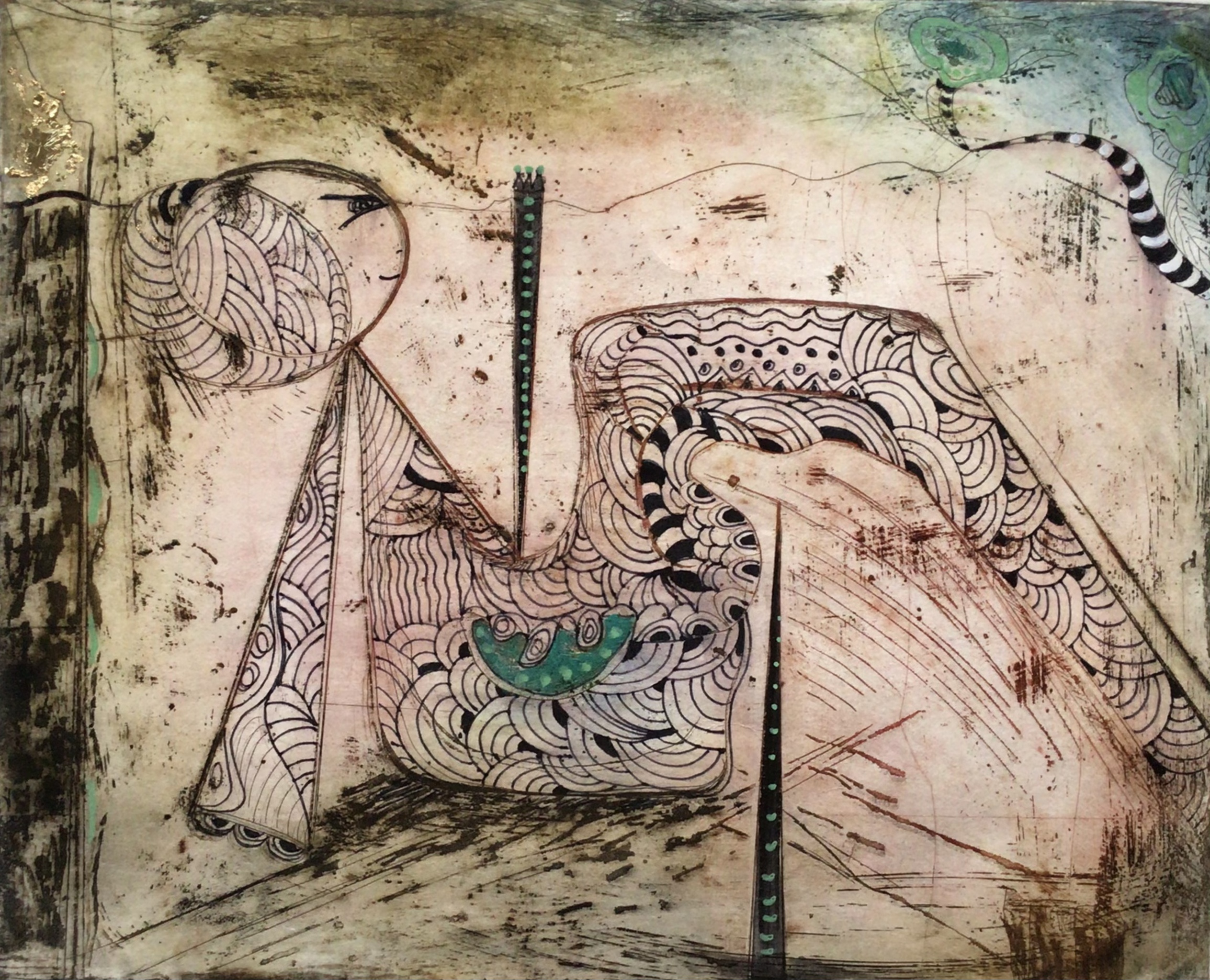 Modern Mixed Papier Techniek Figuur Ets