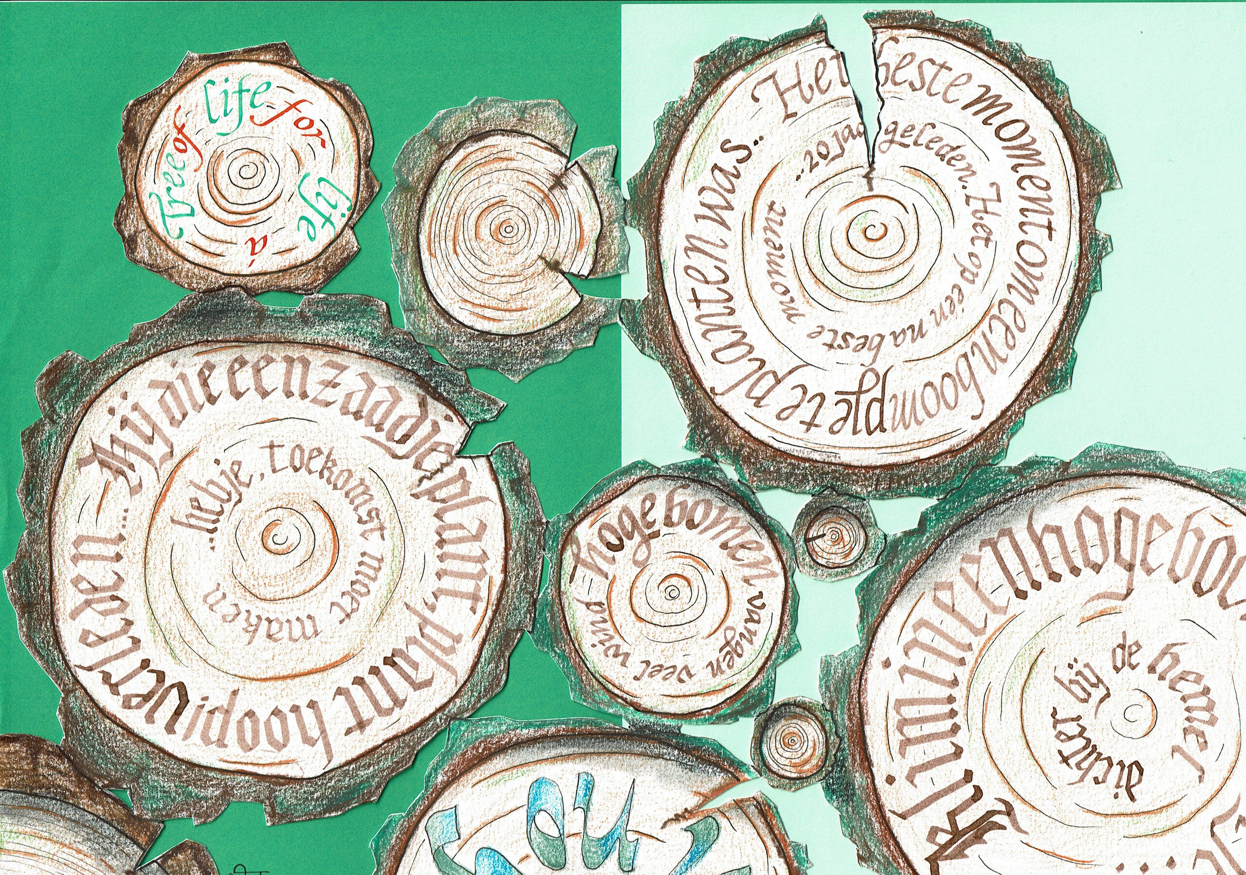Handschrift Tekst Boomstam Meditatief Kalligrafie Gotisch Letterkunst Mindful Inkt Bomen