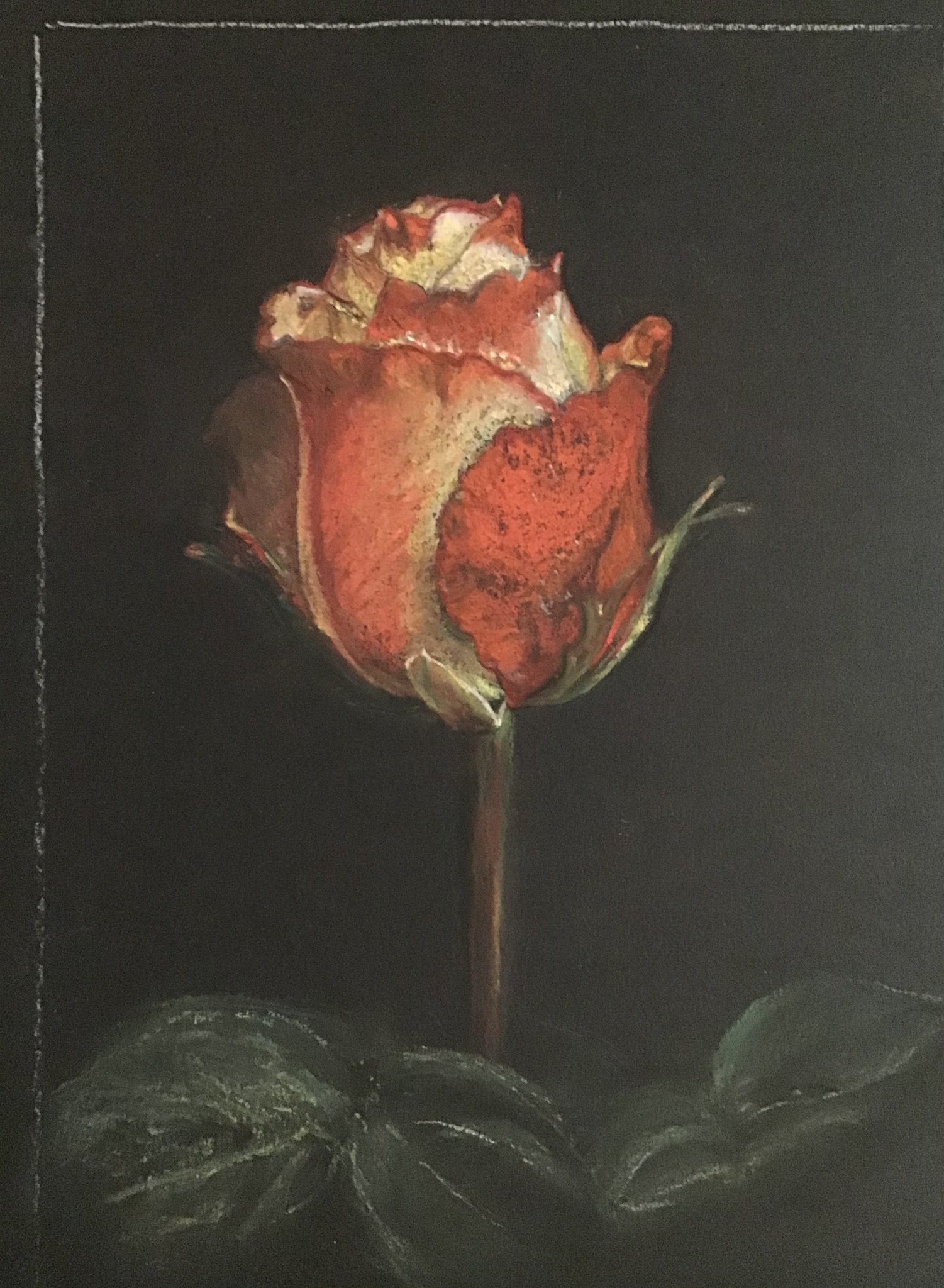 De roos zegt alles...pastelpotlood en -krijt op zwart papier.
