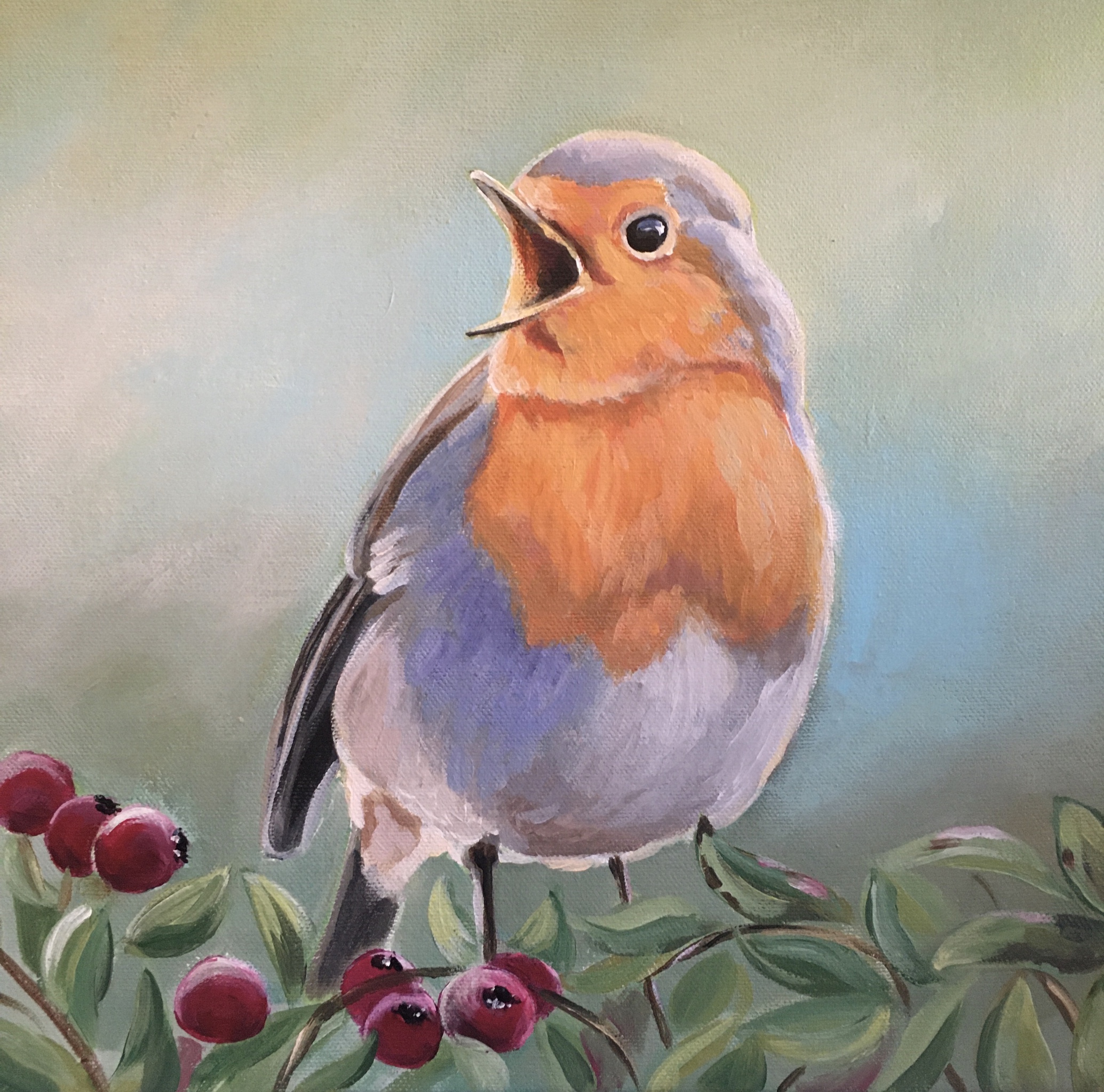 Vogel Painting Bird Vogeltje Roodborst Vogelschilderij Birdpainting Roodbortje
