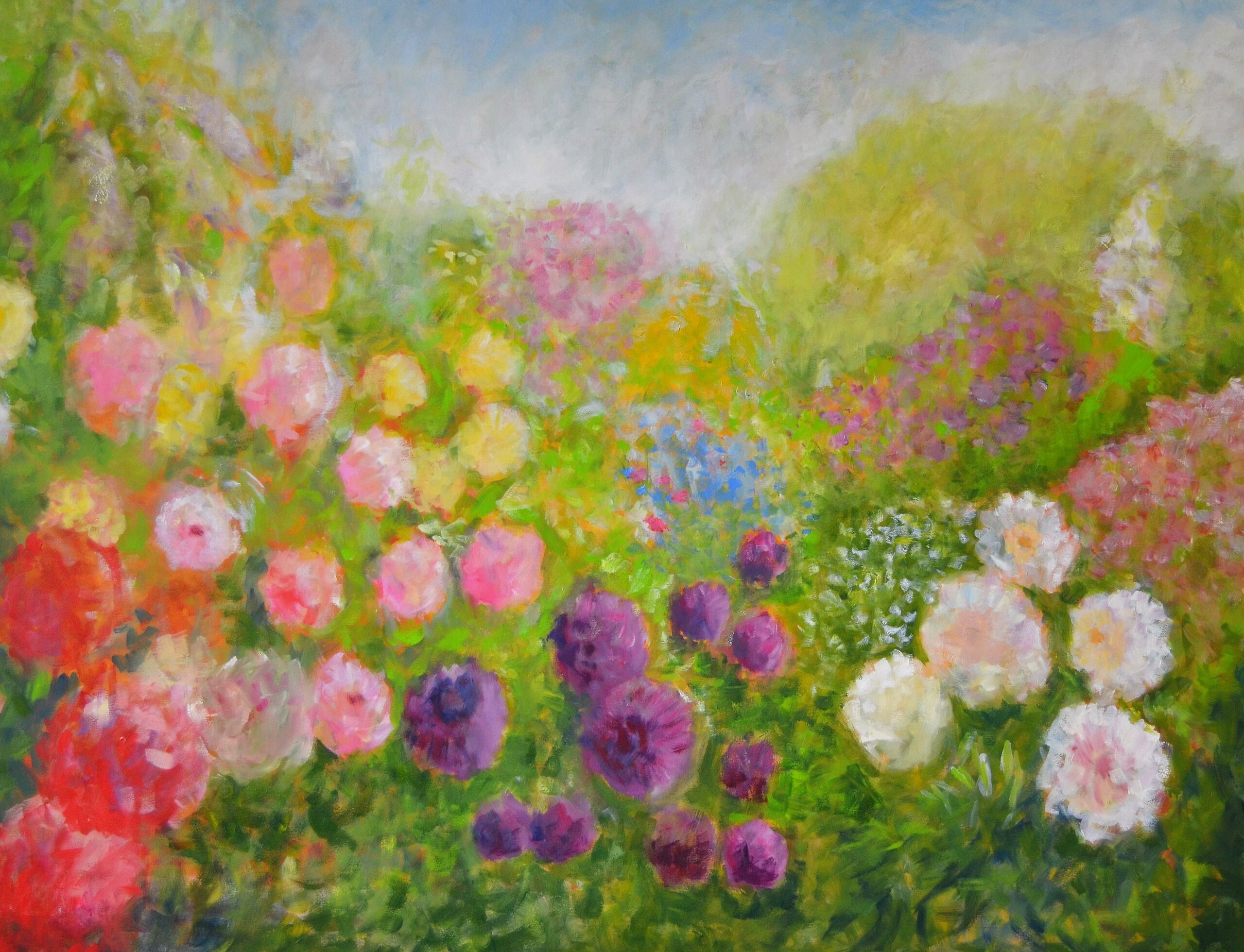 Schilderij naar aanleiding van een bezoek aan de tuin van de familie Verheggen in Lottum. De verscheidenheid en hoeveelheid van de dahlia's heb ik in dit schilderij weer willen geven.