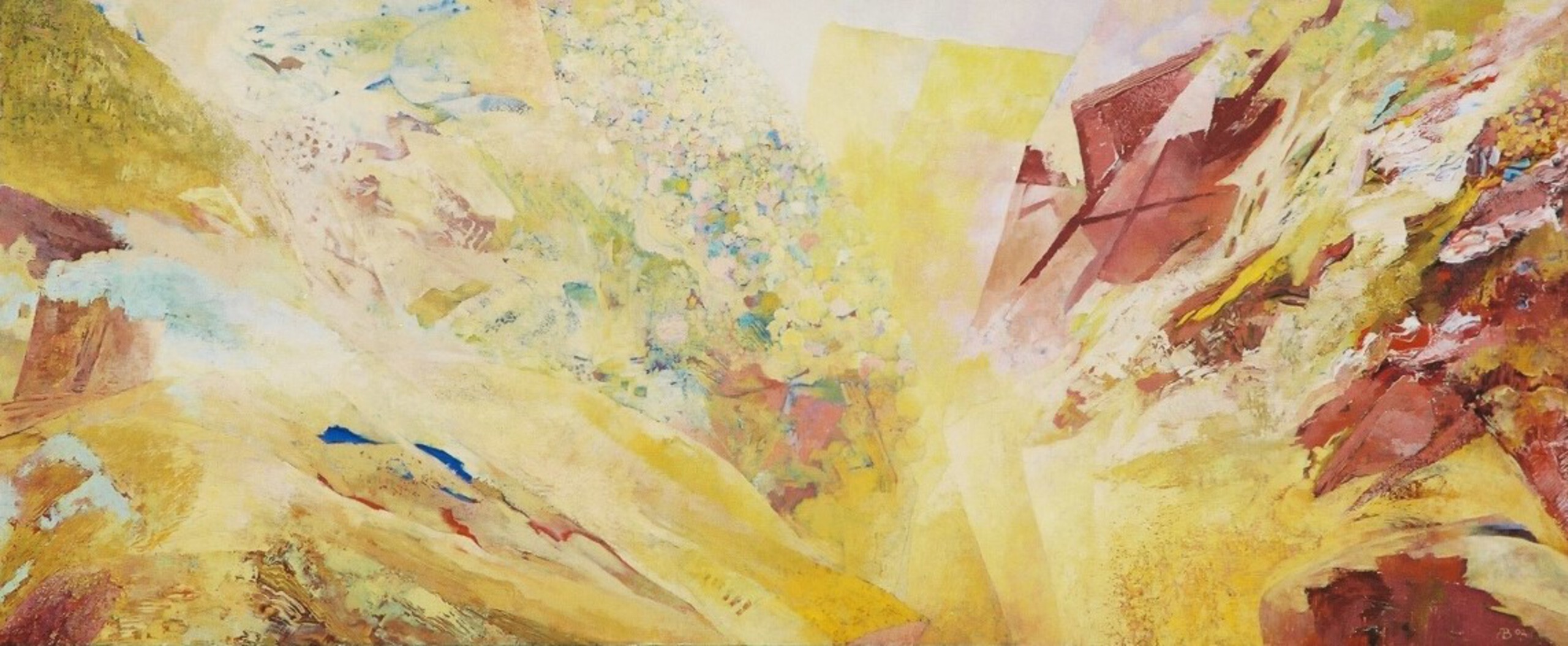 Mijn fantasierijke landschappen zijn gebaseerd op herinneringen en neigen soms naar abstractie.