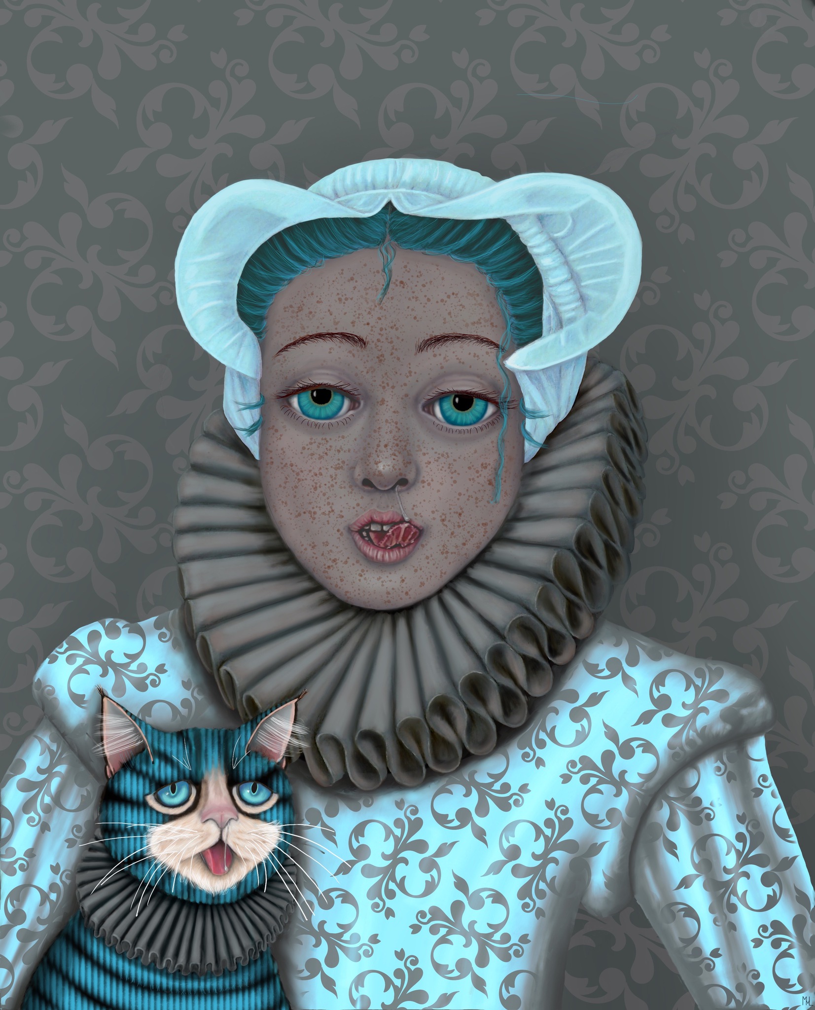 Meisje Digitaal Kat Surreëel Cat Digital Surreal Molensteenkraag Girldoll Millstonecollar
