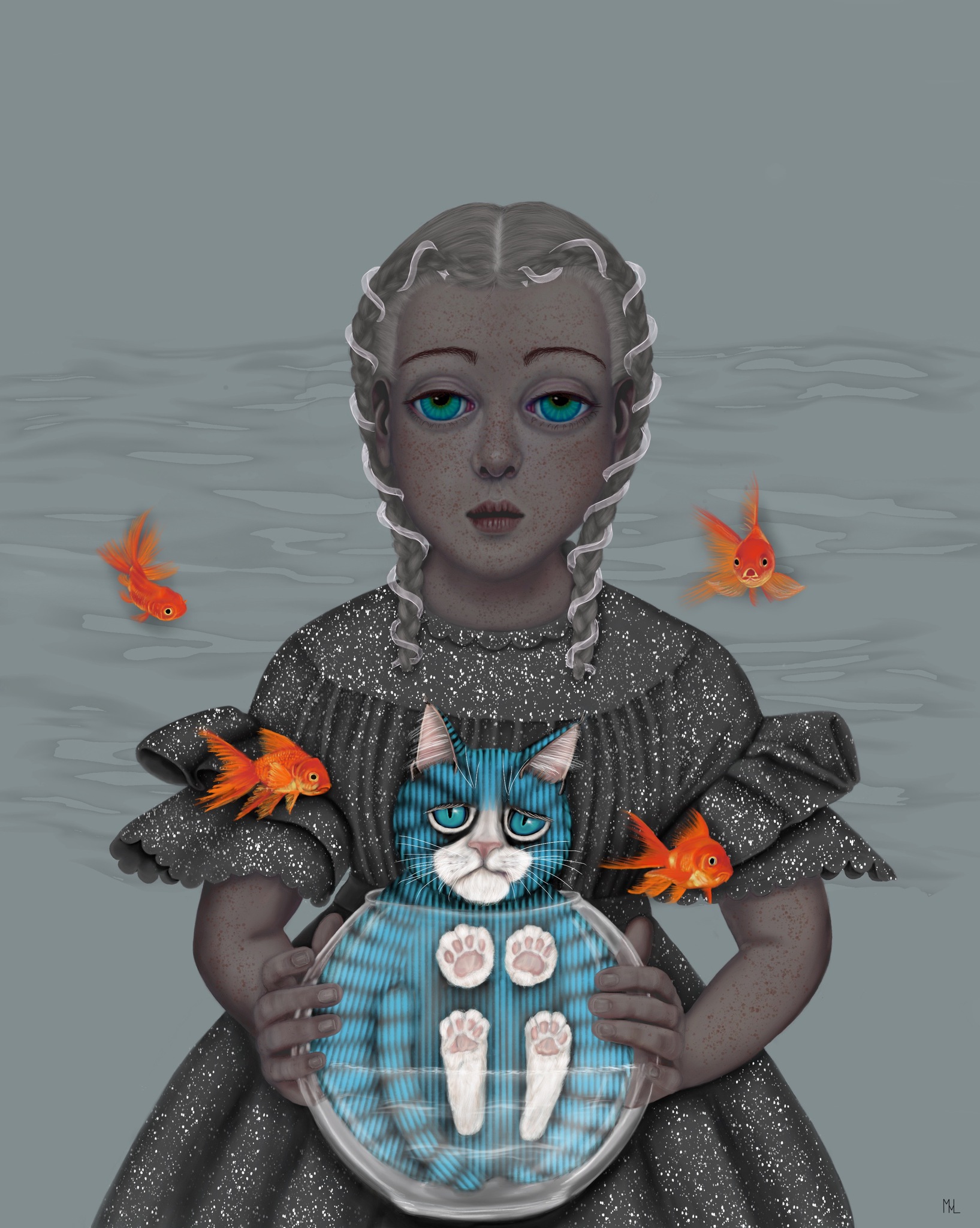 Meisje Digitaal Kat Surreëel Cat Goudvissen Surreal Digitalart Goldfishes Girldoll