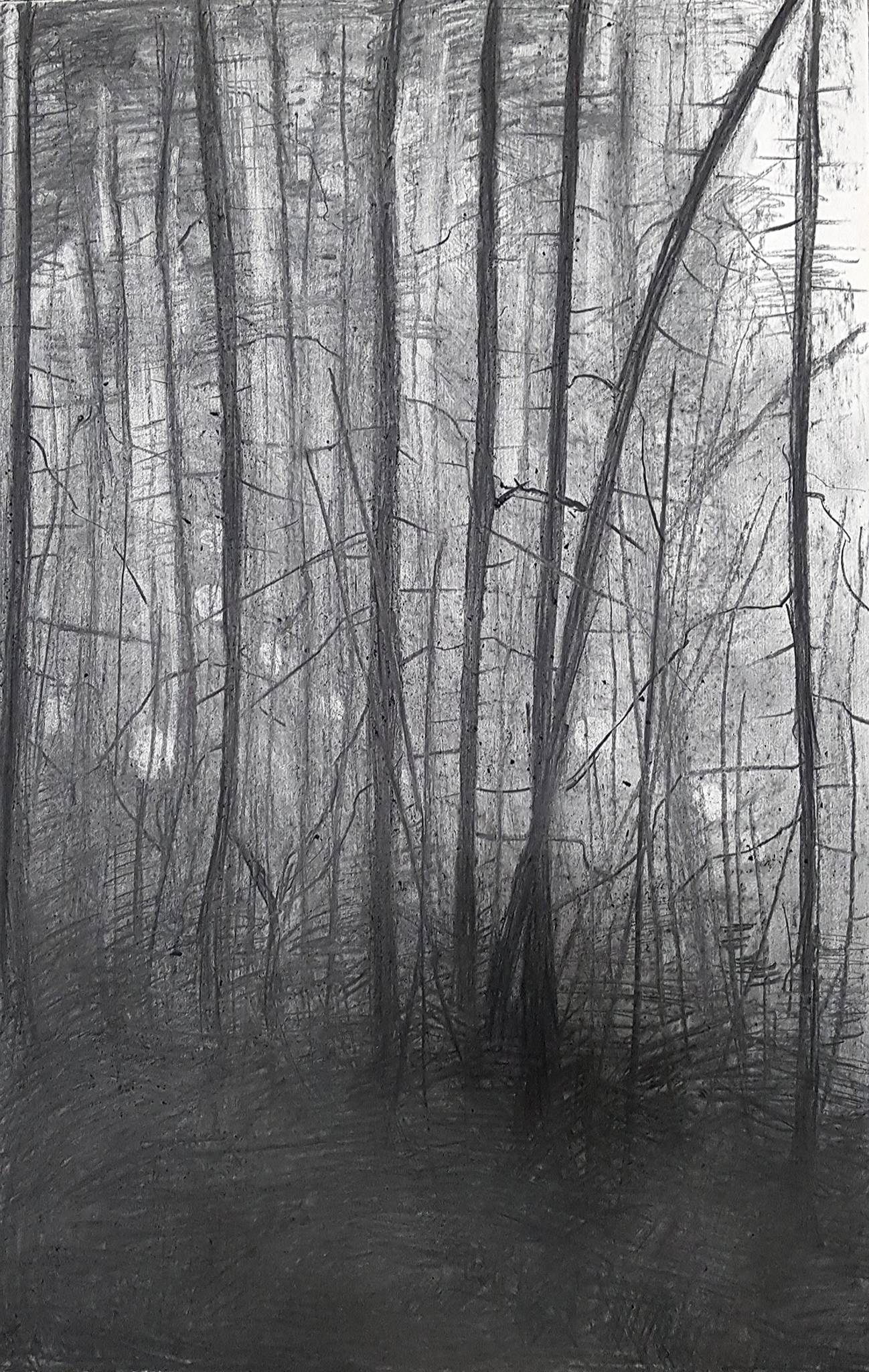 Dennenbos in houtskool