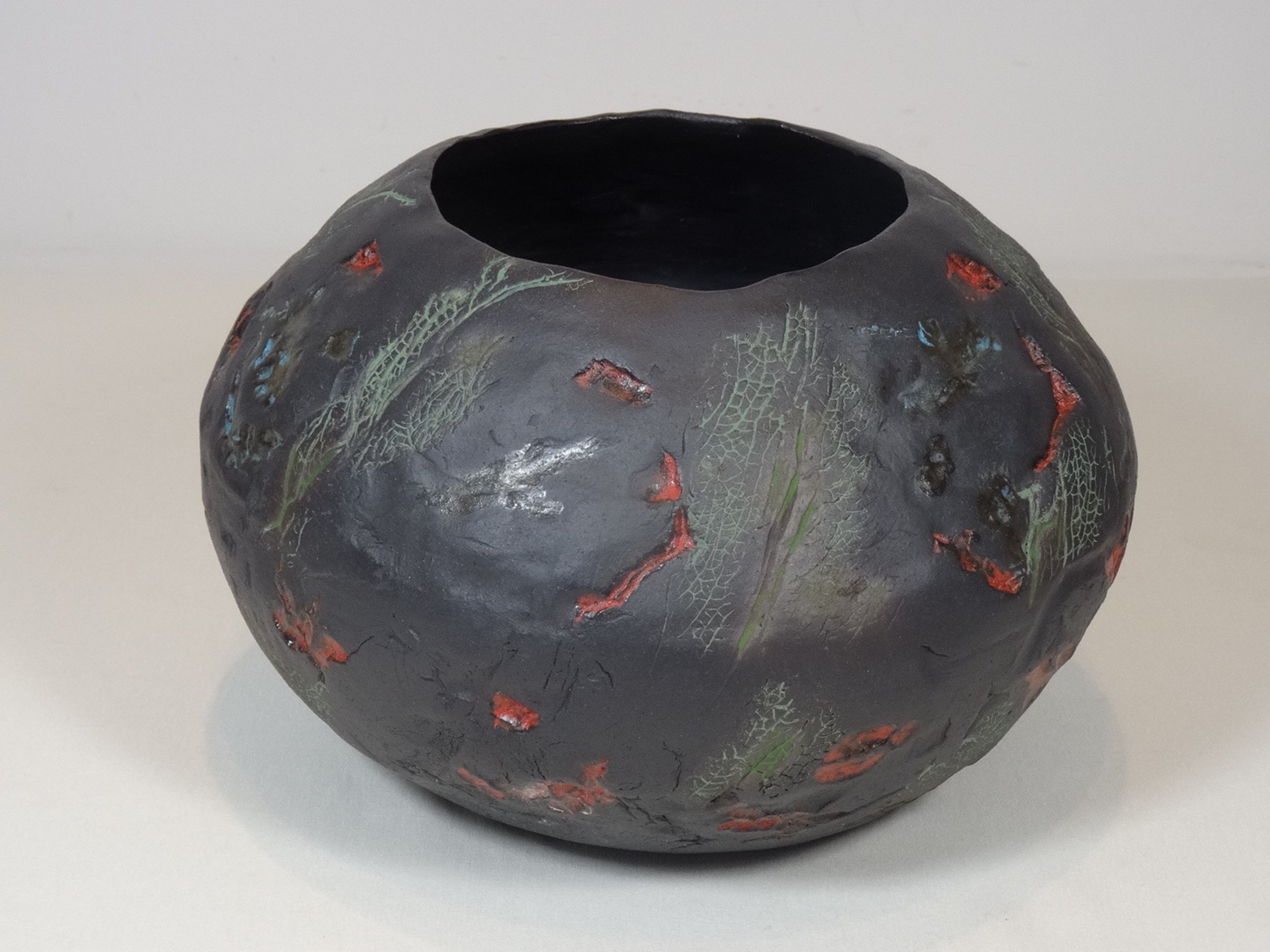 Keramiek Anneke Mulder (1955) Een ontdekkingstocht via Suriname terug naar mijn roots in De Beemster – dat is het verhaal van mijn keramiek. Na mijn opleiding Textiel aan de Amsterdamse Academie voor Beeldende Vorming (1983) volgde ik ook cursussen keramiek, waar ik aanvankelijk weinig mee deed. Dat veranderde toen ik in 2011/2012 in Suriname woonde. Ik werkte een jaar onder leiding van kunstenaar Soeki Irodikromo. De enorme rijkdom van thema’s in de natuur van Suriname was inspirerend. Terug in Nederland bleek echter ook de klei uit mijn eigen omgeving geschikt voor eigenzinnige toepassingen. Inmiddels werk ik met klei uit de Beemster, Purmer en Katwoude. In mijn werk neem ik ook de scherven en pijpenkoppen mee die ik vind in mijn moestuin en de polder. I