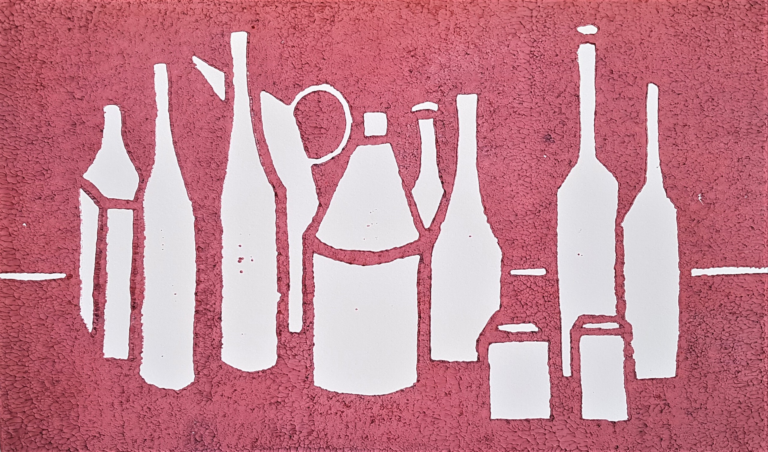 Kunst Stilleven Grafiek Kleur Contrast Flessen Kleurcontrast Linosnede Linoleumsnede
