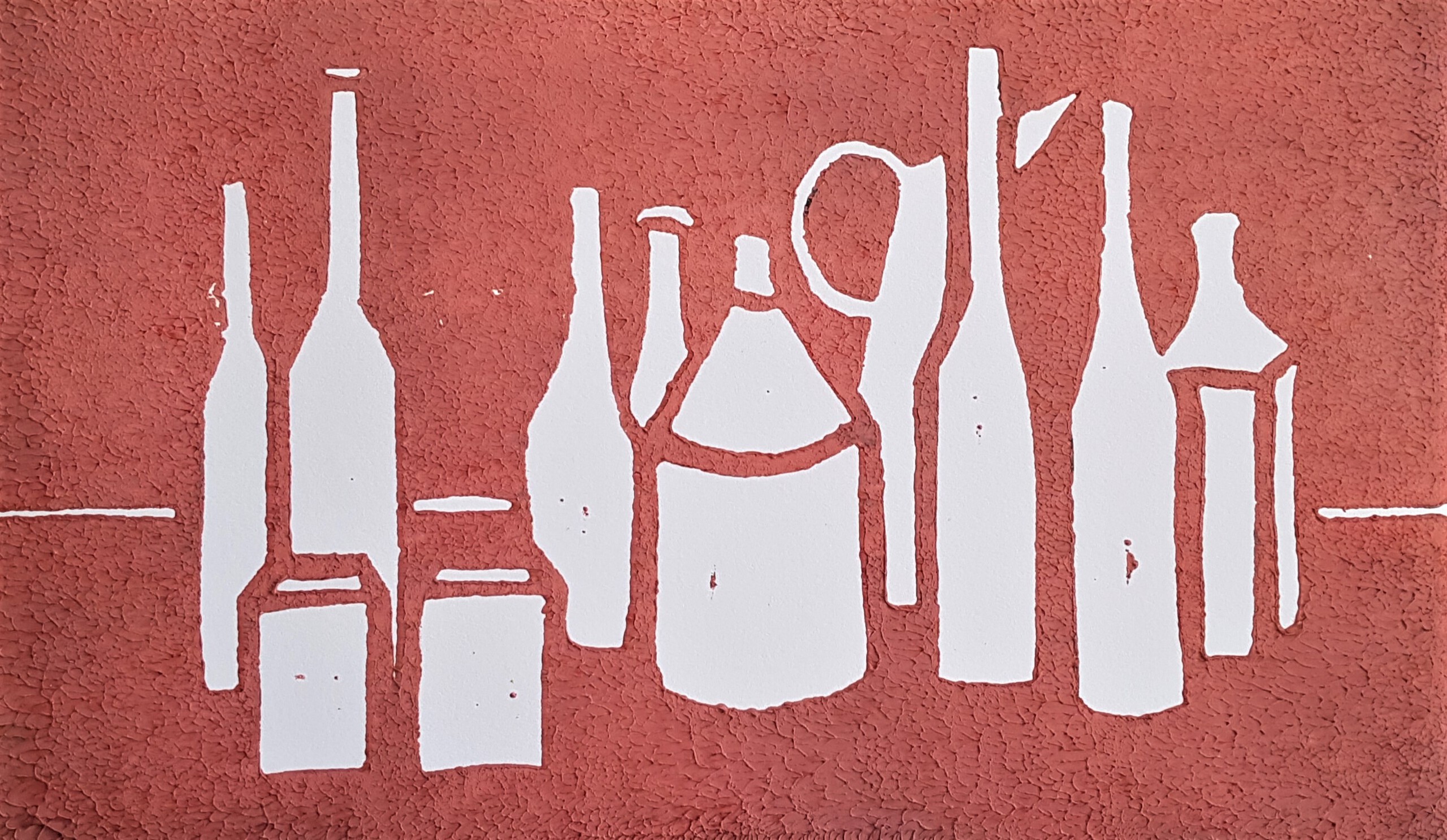 Abstract Kunst Grafiek Kleur Flessen Kleurcontrast Linosnede Linoleumsnede