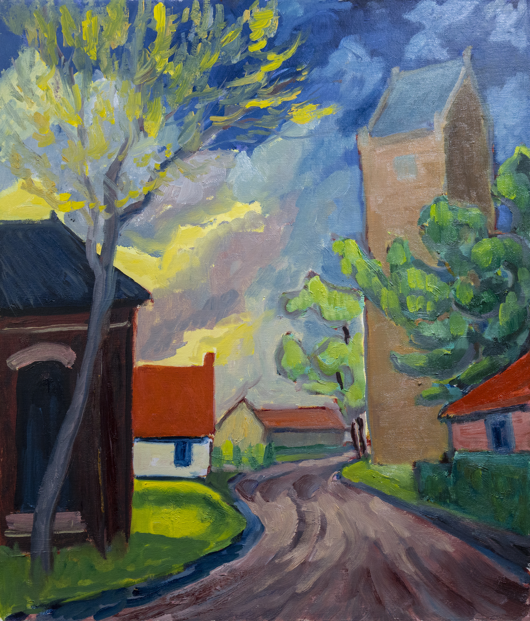 De torenstraat in Nes op Ameland in de stijl van "De Ploeg"