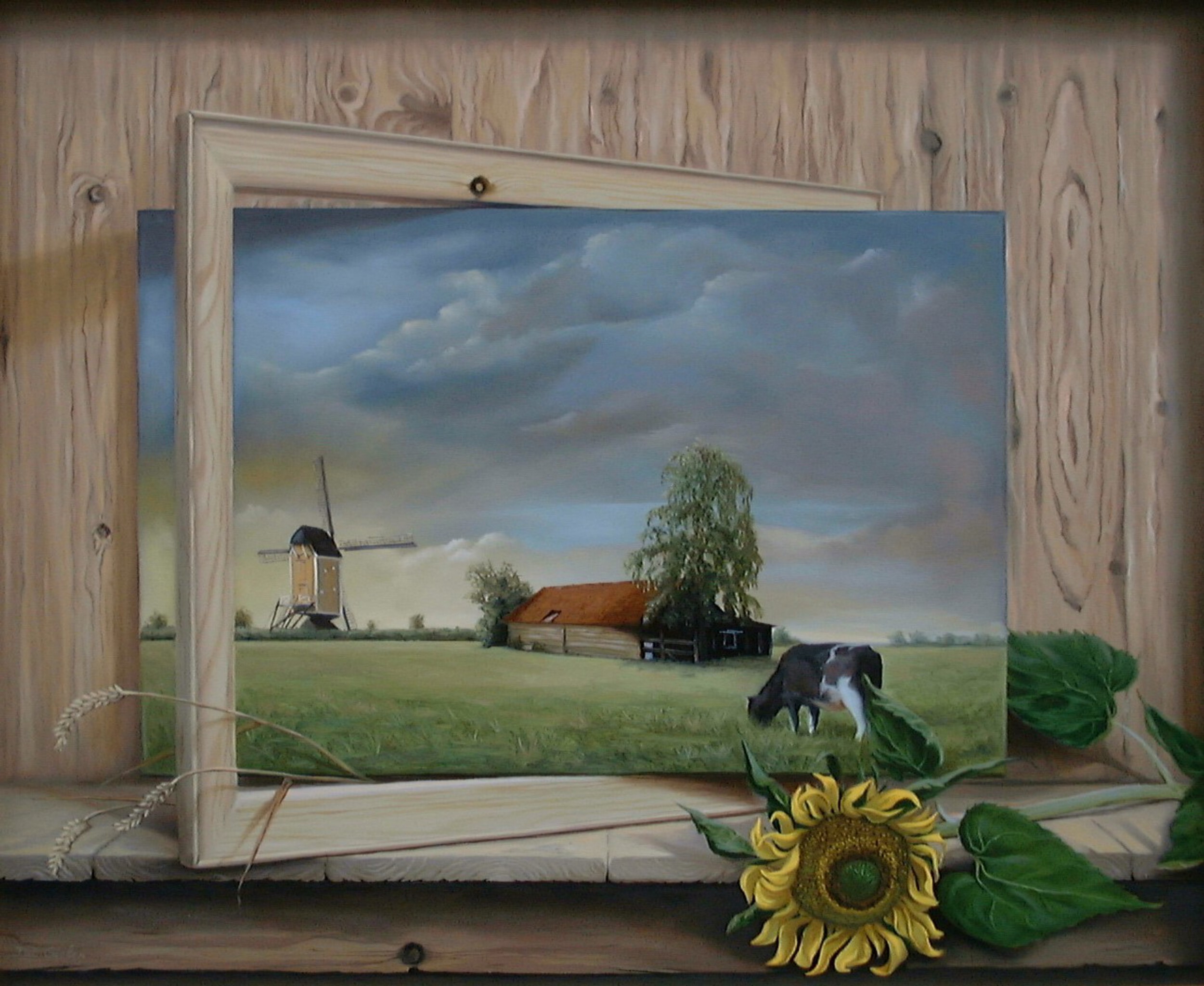 Denkbeeldige situaties vermengd met werkelijkheden balanceren haast in een onmogelijk evenwicht.Het heeft iets raadselachtigs 'een tromp lóeil effect'