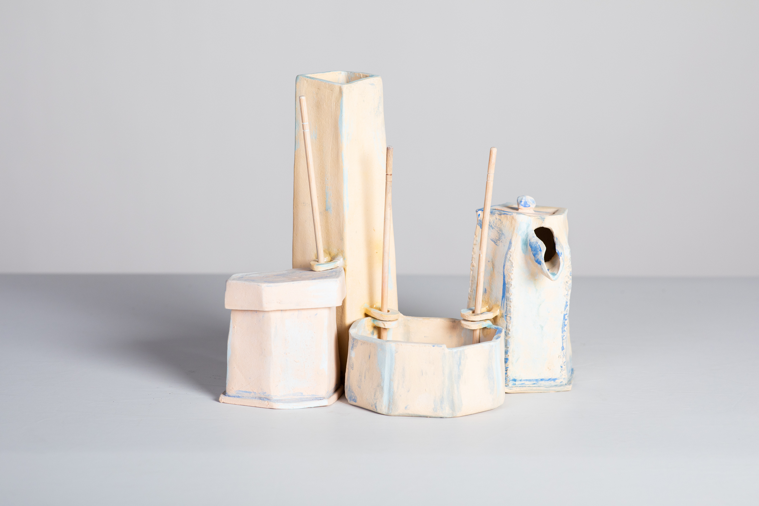 fijne chamotte met pigmenten en eetstokjes