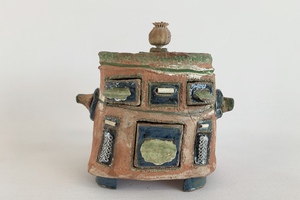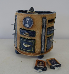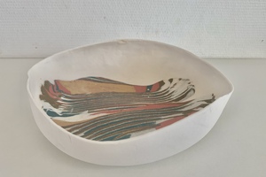 Keramiek Anneke Mulder (1955) Een ontdekkingstocht via Suriname terug naar mijn roots in De Beemster – dat is het verhaal van mijn keramiek. Na mijn opleiding Textiel aan de Amsterdamse Academie voor Beeldende Vorming (1983) volgde ik ook cursussen keramiek, waar ik aanvankelijk weinig mee deed. Dat veranderde toen ik in 2011/2012 in Suriname woonde. Ik werkte een jaar onder leiding van kunstenaar Soeki Irodikromo. De enorme rijkdom van thema’s in de natuur van Suriname was inspirerend. Terug in Nederland bleek echter ook de klei uit mijn eigen omgeving geschikt voor eigenzinnige toepassingen. Inmiddels werk ik met klei uit de Beemster, Purmer en Katwoude. In mijn werk neem ik ook de scherven en pijpenkoppen mee die ik vind in mijn moestuin en de polder. I