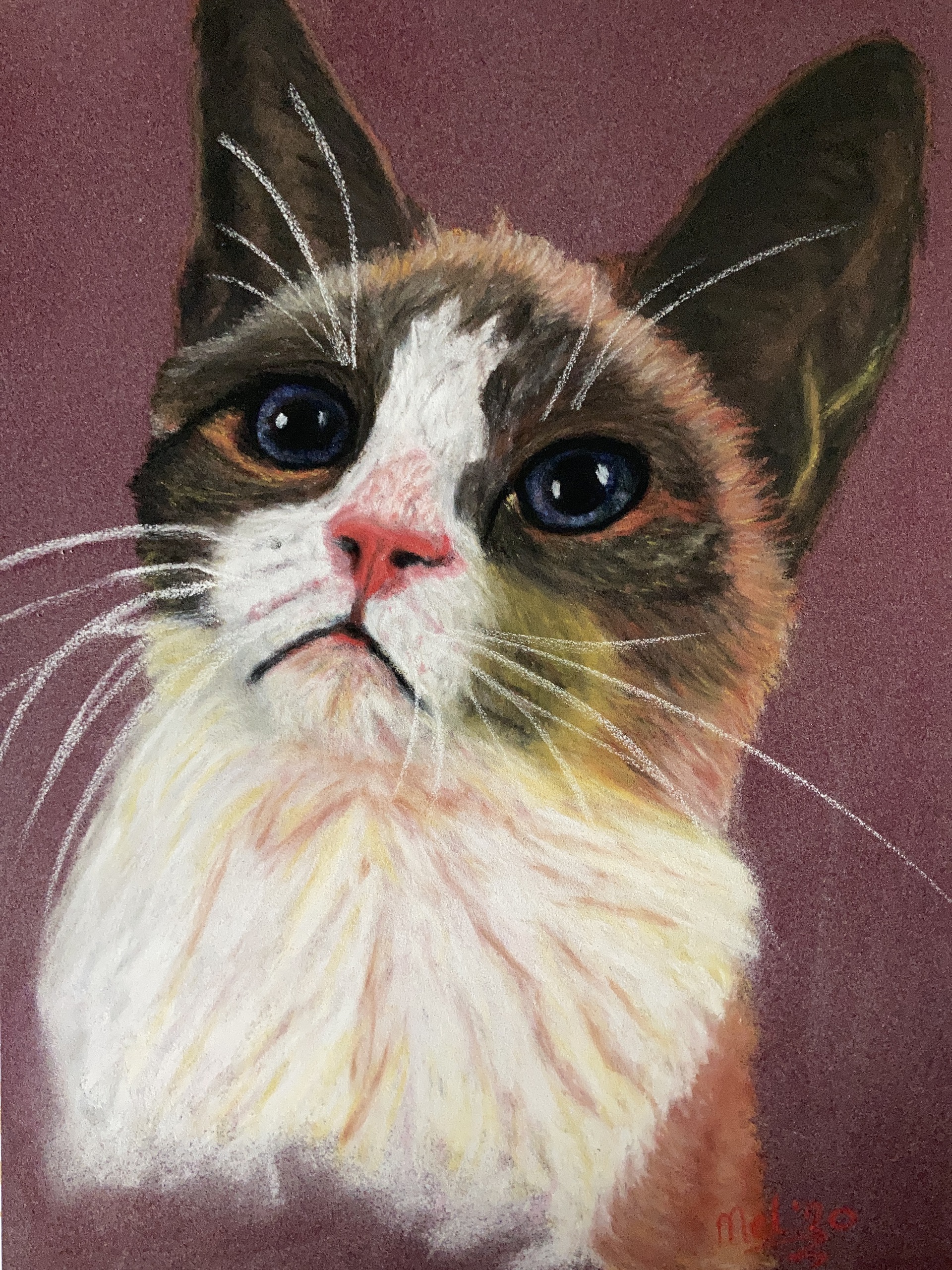 Ik ben Mel, geboren in 1975 te Rotterdam. Ik teken al sinds ik klein was katten en ben autodidact. Ik werk veel met softpastel omdat dit medium mijn katten het best tot zijn recht laat komen. Veel plezier bij het bekijken van mijn katten!