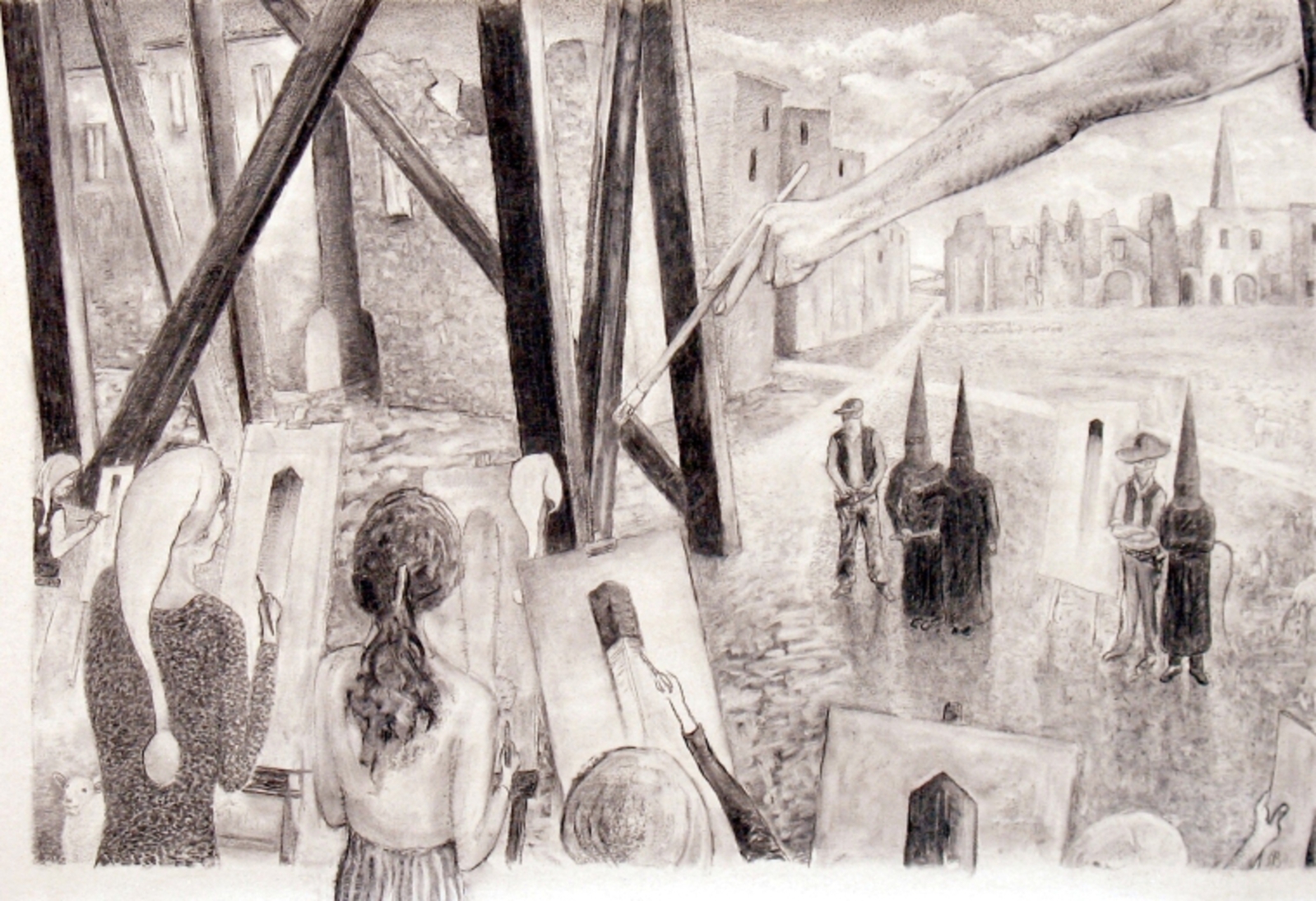 Kunstenaars Stad Toren Plein Repressie Verraad Hengelo Houtskool
