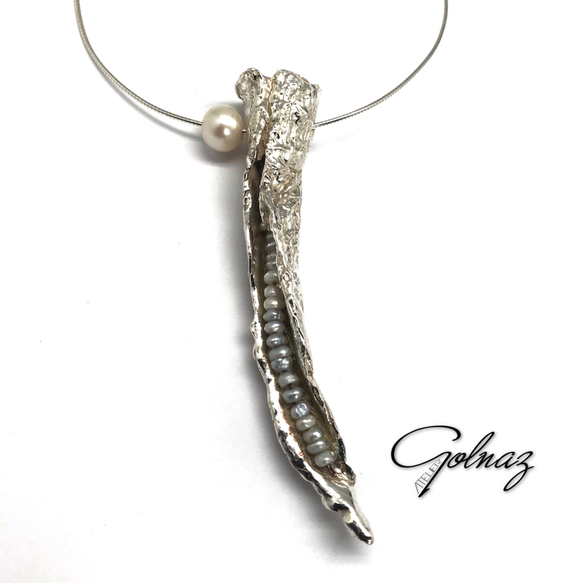 Golnaz Hendriks vormt sieraden als sculpturen. Zij is beeldend kunstenaar en sieraadontwerper. Onder de naam Atelier Golnaz creëert ze sieraden die de grens tussen kunst en draagbaarheid opzoeken.