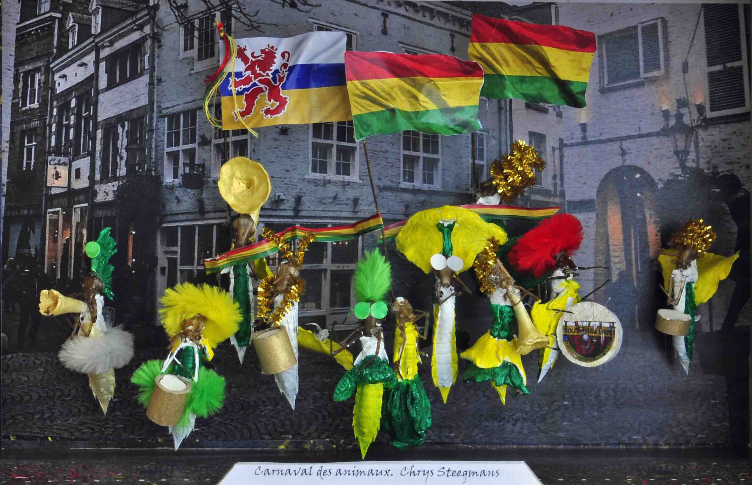 In de serie 'Carnival des Animaux' vormen 11 'libellehuidjes' de zaate hermenie Greun en Geel. Wat als dieren zich zouden gedragen als mensen.