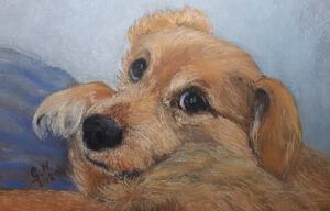Rescuehond Hond Vermist Atos Beige Zwart Wit Blauw Hondenportret Pastel